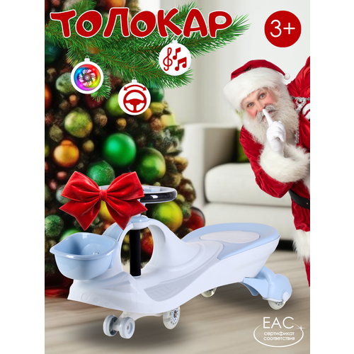 Надежная красочная каталка (пушкар, плазмокар, толокар, бибикар, машинка) с удобным анатомическим сиденьем станет любимой игрушкой вашего ребенка. Прогулочная машинка толокар предназначена для детей, для девочки и мальчика, не имеет острых углов. Спортивная тачка крайне проста в управлении и подходит абсолютно для любого возраста с 3 х лет, так как выдерживает вес до 80 кг. Машинка имеет вместительную корзинку для нужных мелочей, несколько музыкальных режимов и так же светодиодную подсветку руля работающие от 3 батареек типа АА (в комплект не входят). Бесшумные полиуретановые колеса 90 мм позволяют кататься дома и на улице. Подходит для катания по любым поверхностям (паркет, плитка, дерево и т. д ). Для движения на толокаре необходимо сесть, слегка наклонившись вперед, а ноги расположить на специальных резиновых подставках. Чтобы машинка ехала, достаточно просто поворачивать руль вправо или влево, игрушка будет двигаться за счет сил тяжести и притяжения. При желании для маневра можно оттолкнуться ногой. Если развернуть руль в обратном направлении на 180 градусов, машинка поедет назад. Для остановки рекомендуется просто прекратить вращать руль и снять ноги с подставок игрушки. Шестиколесный самокат беговел выполняет функции не только детской игрушки и отличного развлечения для ваших детей, но и способствует укреплению мышц с самых ранних лет, развитию координации и динамичности. Благодаря этому пластиковому автомобилю, Ваш малыш будет развивать ручки и ножки. По скорости бибикар не уступает современным электромобилям, он развивает скорость до 10 км в час без затрат электроэнергии. Забава для детей и взрослых! Развлечение для корпоративов, свадеб и любых праздников. Можно ездить задним ходом, развороты на месте на 360 градусов и другие трюки. Взрослые становятся как дети. Экономичная, увлекательная и долговечная игрушка. Уникальный чудо транспорт подарит Вам и вашим детям множество часов удовольствия от вождения и игры. Вес толокара 3.565 кг