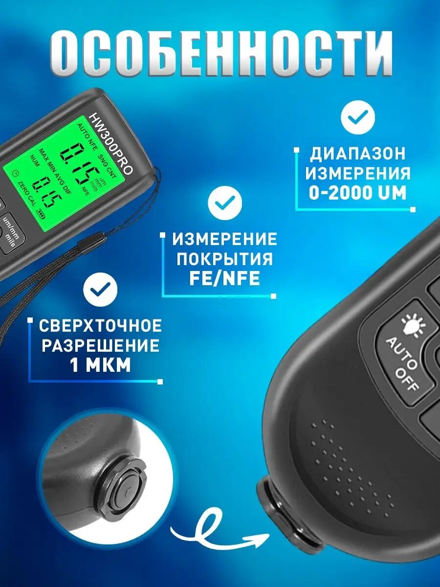 Толщиномер автомобильный - необходимый измерительный инструмент в наборе каждого автолюбителя! Практичный толщиномер лакокрасочного покрытия предназначен для высокоточного измерения толщины незаводских изменений таких покрытий, как грунт, эмаль, автомобильная или огнеупорная краска, пластик, шпаклевка и эпоксидная смола на железных и алюминиевых поверхностях. Автомобильный прибор имеет отличные показатели точности с диапазоном измерений от 0 до 2000 микрон. Высокоточный толщиномер автомобильный лакокрасочный выполнен в компактном размере, благодаря чему вы с легкостью можете брать его с собой, хранить в бардачке, в салоне в органайзере для автомобильного кресла или в комплекте с другими автоаксессуарами в багажнике авто. Надежный измеритель покраски работает от батареек, которые входят в комплект. Вы можете использовать автомобильный аксессуар при минусовых температурах! Он одинаково хорошо делает замеры в диапазоне температур от -15 до +40 градусов. Удобный инструмент для авто прост в использовании. Достаточно поднести оборудование для автомобиля к выбранной поверхности под углом 90 градусов для непрерывного и точечного измерения. Показания будут считаны автоматически за 1 мс. Благодаря такому способу проверки, авто инструмент сможет быстро выявить свежие пятна от краски по металлу автомобильной, краски для авто и других покрытий. Исследуемая область гладкого покрытия автомобиля не разрушается и не повреждается при воздействии на нее прибором. Устройство имеет автоматический режим измерения металлов, встроенную функцию калибровки и переключатель единиц измерения: миллиметры, миллидюймы и микроны. Конвертация результатов осуществляется мгновенно. ЖК дисплей толщиномера для машины оснащен режимом подсветки, которая отлично пригодится для работы в плохо освещенном помещении или в темное время суток. Инструменты для авто имеют широкий спектр применения. Толщимер для всех видов металла подходит для автоподбора, выявления лакокрасочных материалов при строительных и малярных работах, ремонте и производстве автомобилей. В комплекте идёт инструкция, с помощью которой вы легко и быстро в домашних условиях сможете самостоятельно откалибровать и настроить инструмент. Полезные измерительные приборы станут отличным подарком любому автомобилисту. Сделать приятный презент вы можете без повода или на день рождения, юбилей, новый год, 23 февраля, 8 марта и другие праздники! Прибор не оказывает разрушающего воздействия на исследуемую область и гарантирует высокую точность измерений благодаря функции автоматической калибровки. Замеры на черных и цветных металлах(Al). Мгновенное определение толщины лакокрасочных покрытий? Автоматическое отключение толщиномера при длительном простое для экономии заряда элементов питания. Этот прибор не может использоваться для тестирования вашей бытовой техники (Холодильник, духовка, микроволновая печь и т. д.). Для лакокрасочных покрытий / Для авто измеритель ЛКП. Наши товары вы можете найти по запросу: толщиномер автомобильный, толщиномер, толщиномер магнитный, толщиномер лкп, толщиномер лакокрасочного покрытия, толщиномер автомобильный лакокрасочные, толщиномер магнитный, толщиномер автомобильный лкп, толщиномер для авто, толщиномер лакокрасочного покрытия, толщиномер авт