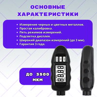 Скорость измерения 1 секунда, максимальный диапазон до 3500 микрон, погрешность всего 1%.