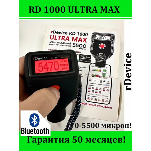 - Надежность - 3 года гарантии, профессиональная надежность толщиномера (предполагает ежедневное использование). Высочайшее качество сборки и надежность комплектующих, нет просвечивающихся элементов пластика, при этом толщиномер достаточно легкий и прочный. Русифицированный интерфейс - обновленный интерфейс на русском языке, а также возможность выбора еще 5 различных языков.- Увеличенный диапазон измерений - максимальный диапазон измерений до 5500 микрон. Зимний режим. Толщиномер RD-1000 ULTRA MAX как и все приборы линейки rDevice, адаптирован для работы в зимних условиях, за счет второго экрана до -25 градусов, краткосрочно до -30 гр. При этом, показания толщиномера точные, в зависимости от температуры.- Эргономичный дизайн, компактный размер - черный строгий дизайн, прибор не просто компактный, он удобный.
