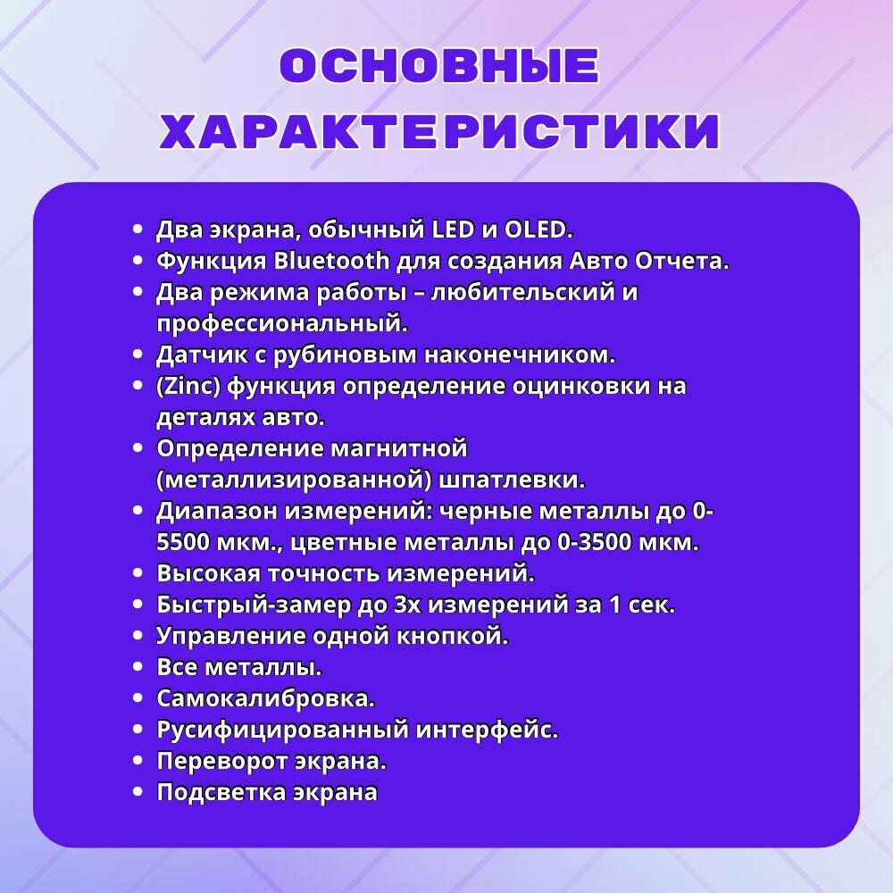 - Определение магнитной (металлизированной) шпатлевки + толщина краски.