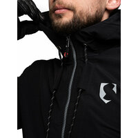 Эластичные манжеты с проймой для пальца. Водонепроницаемый внутренний карман. Кнопка для крепления капюшона к спине. Шеврон на липучке на правом рукаве. Ремешки для пристёгивания к джинсам.
