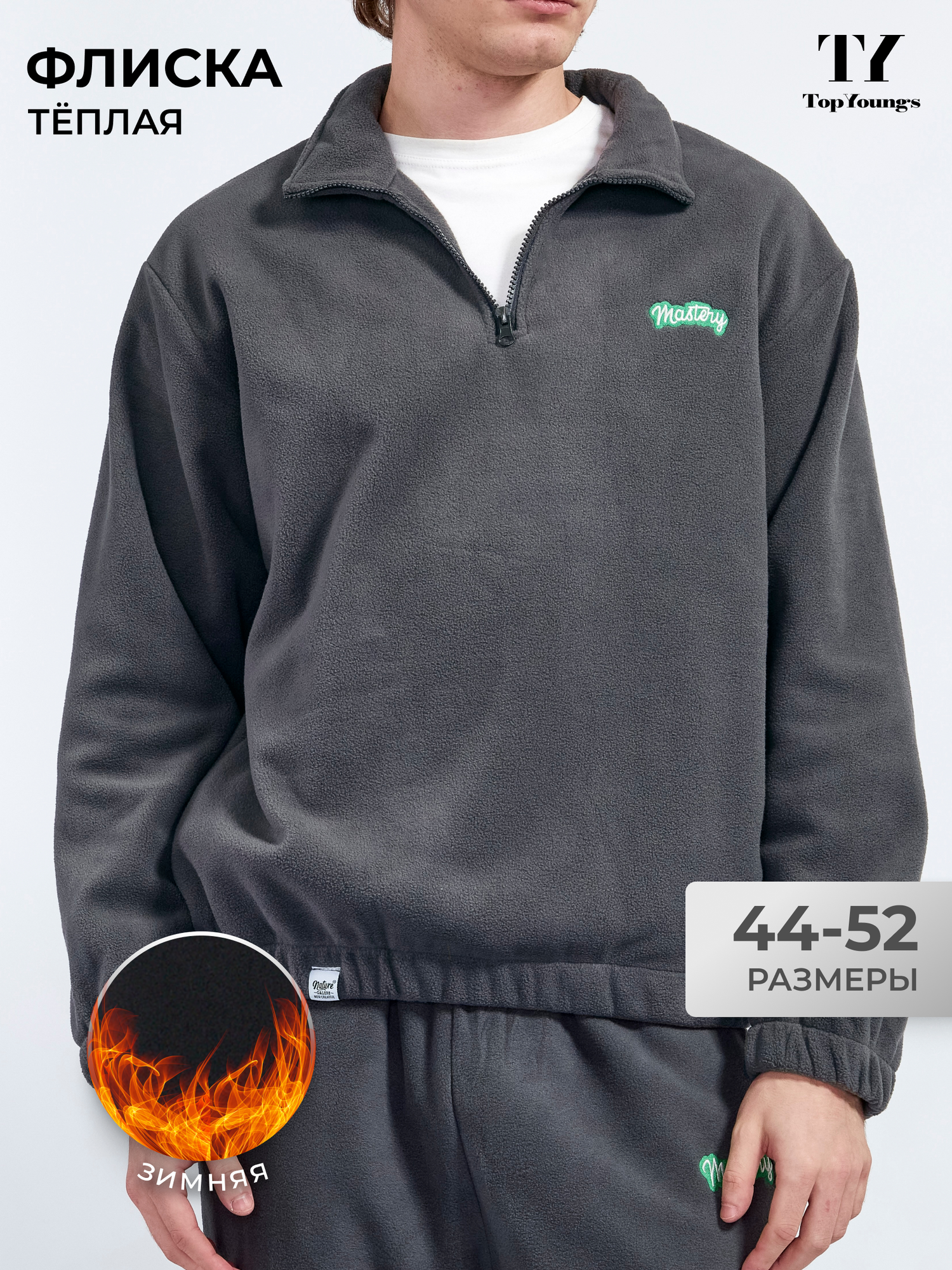 Купить Толстовка TopYoungs флисовая теплая без капюшона, полузамок мужская/женская, размер XL, , серый с доставкой по всей России.
