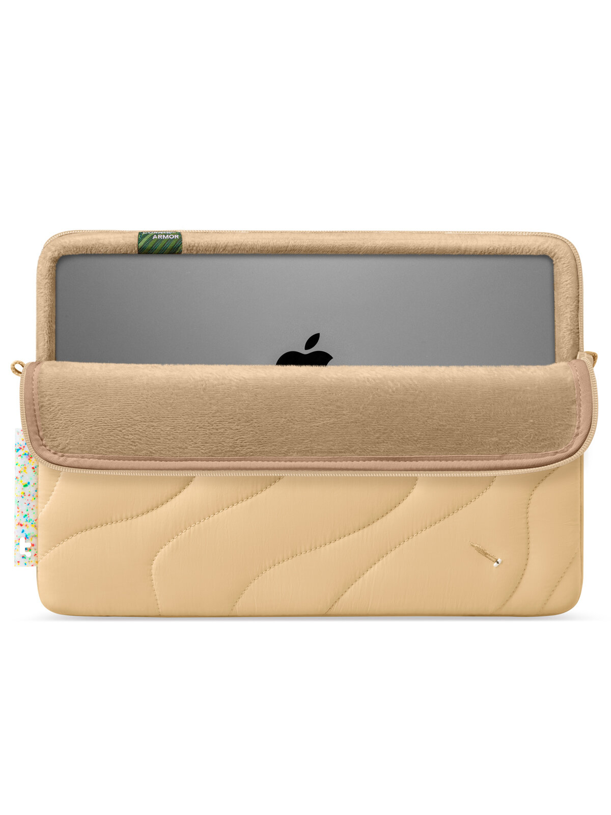 Стильный кейс с оригинальным стеганым дизайном изготовлен из возобновляемых и экологически чистых тканей, которые обеспечивают долговечность использования и легкий уход. Внутренняя часть сумки усилена плюшевой подкладкой для предотвращения появления царапин и повреждений при переноске. В чехле применена подтвержденная технология CornerArmor x4 Protection, которая за счет специальных вставок в углах абсорбирует удары и является анти-шоком, что многократно увеличивает защиту макбука при падениях и ударах.