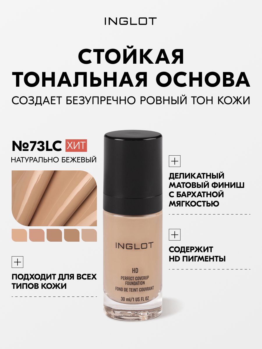 Тональная основа Inglot HD Perfect 30 мл — стойкая, матирующая, для всех типов кожи, с белым трюфелем №73: сравнение цен, характеристики, фото, актуальное наличие и цены.