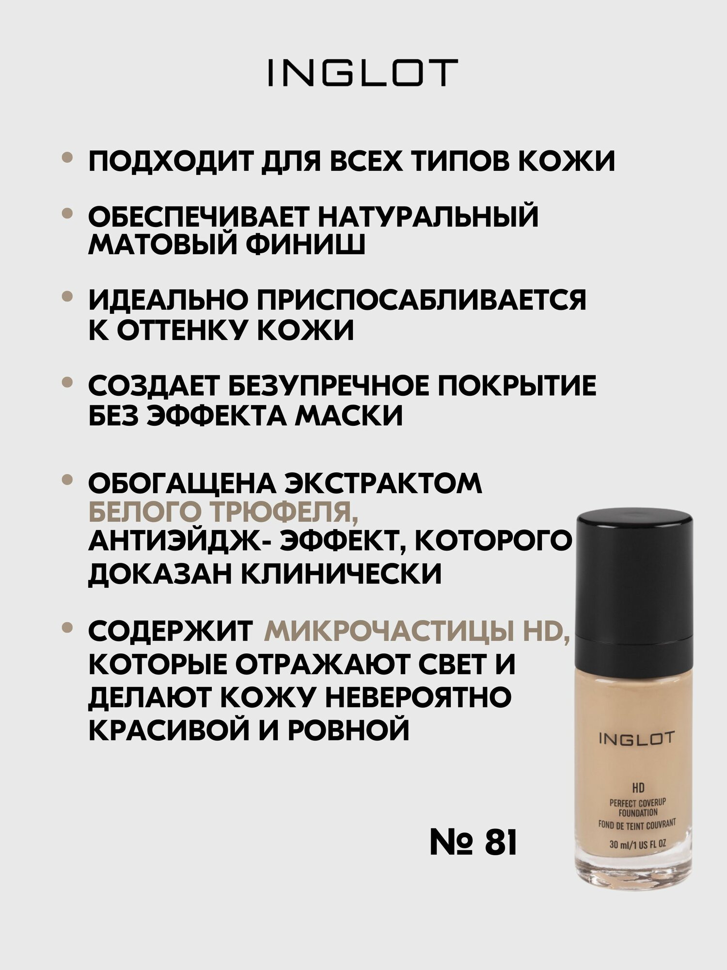 | Цвет товара | 71, 71 бежевый теплый, 72 розоватый беж, холодный, 73, 73 песочно-бежевый, холодный, 74, 74 мягкий загар, теплый, 75 мягкий загар, теплый, 79 бежевый, 80, 81, 82, коричневый, светло-бежевый |