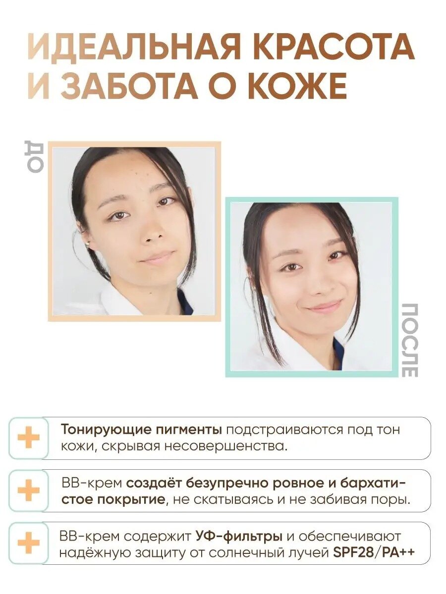 Тональный bb крем для лица и сухой кожи с гиалуроновой кислотой, SPF 28 PA++, 50 мл