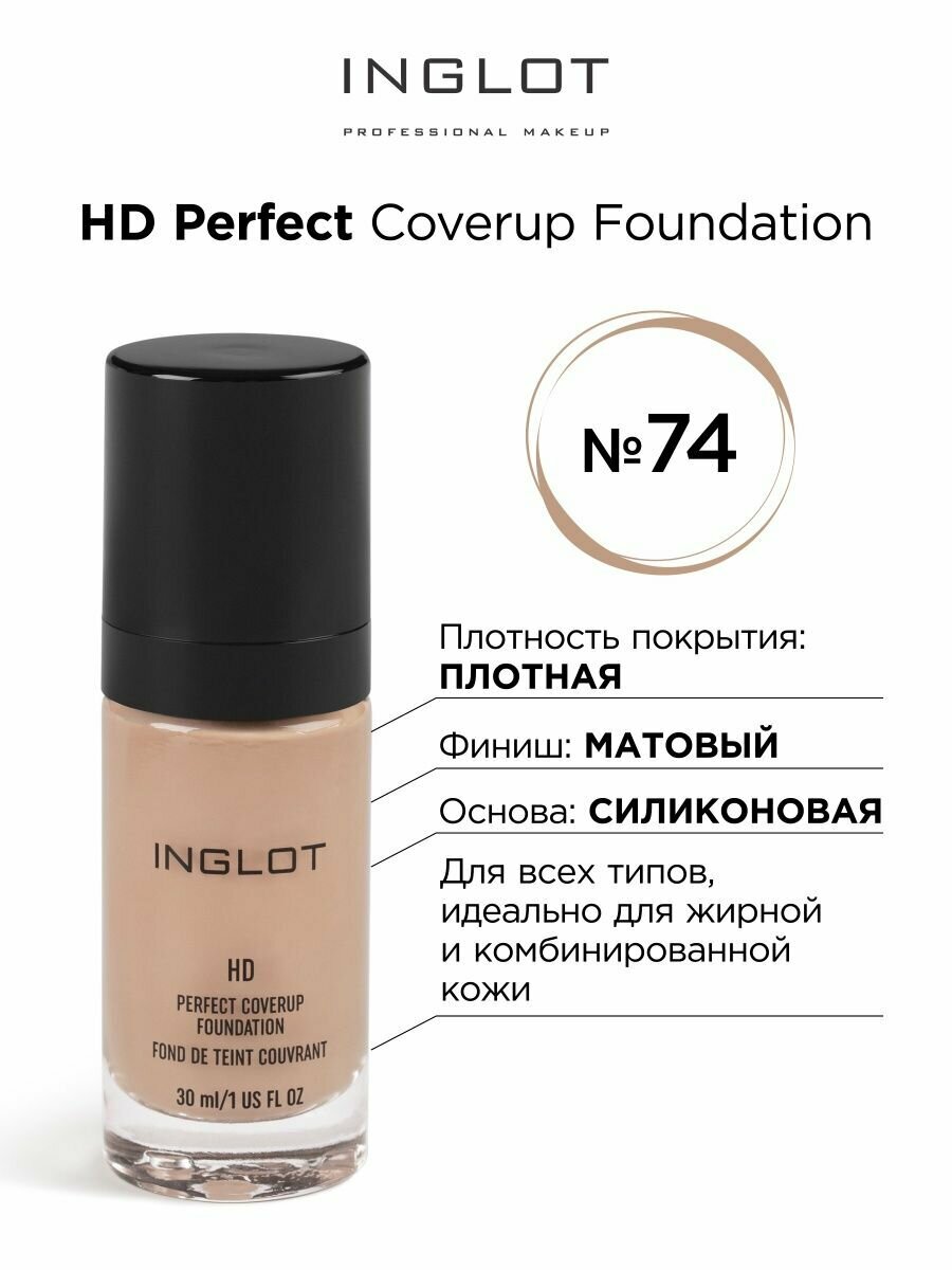 Тональный крем INGLOT HD perfect coverup foundation 74: сравнение цен, характеристики, фото, актуальное наличие и цены.