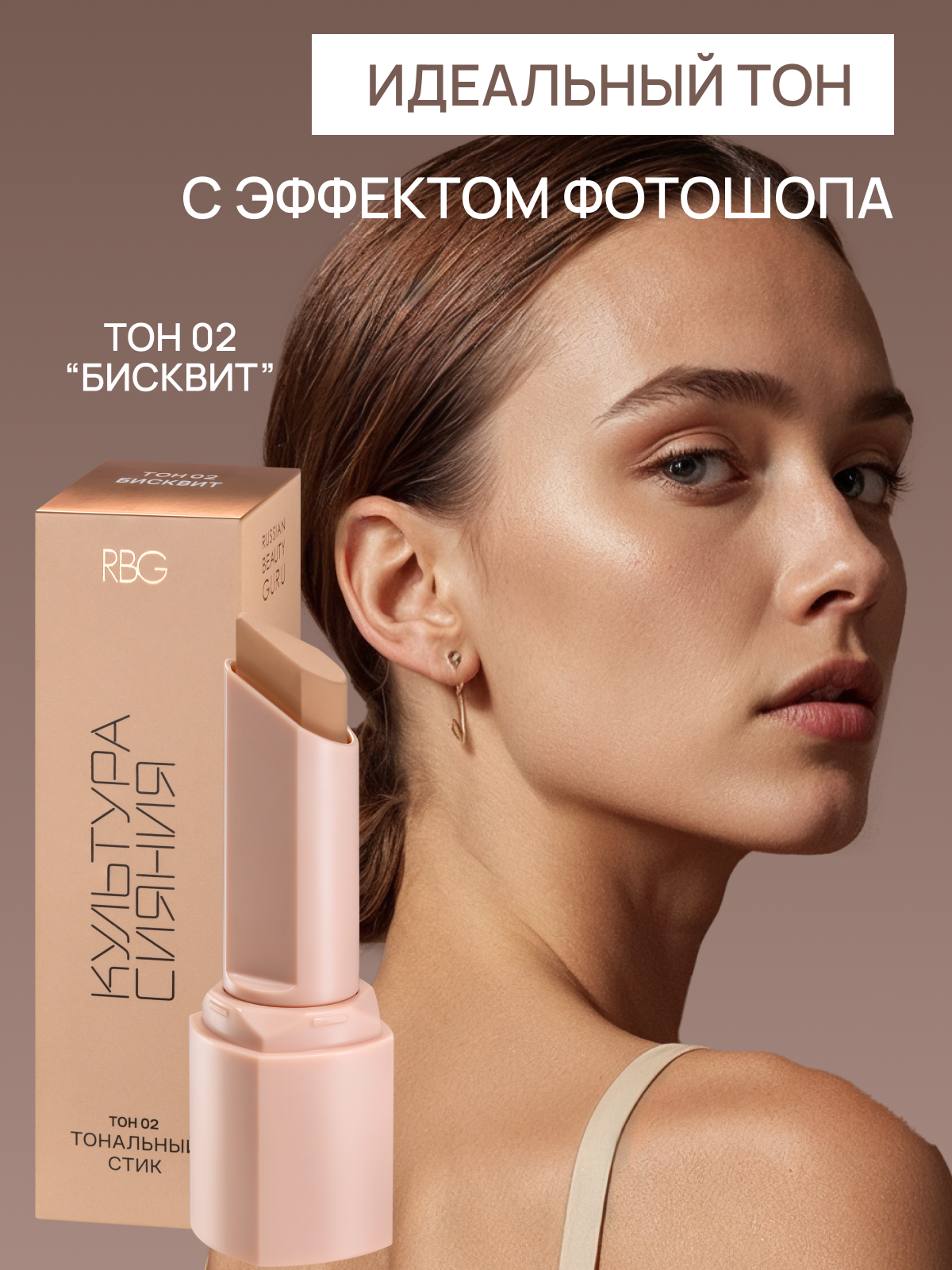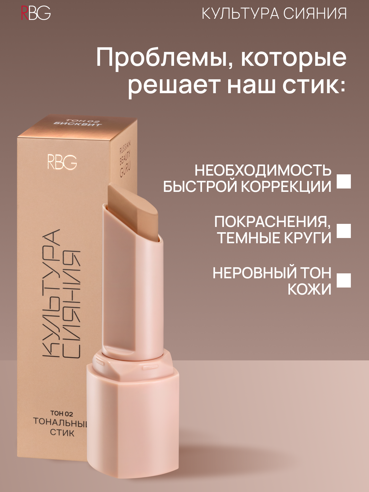 Купить Тональный стик «Культура сияния» тон 02 «Бисквит» нейтральный бежевый оттенок с доставкой по всей России.
