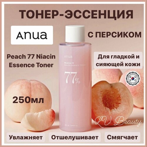 Тонер-эссенция с персиком Anua Peach 77 Niacin Essence Toner деликатно отшелушивает роговой слой, смягчает и разглаживает, отлично готовит текстуру кожи к макияжу.