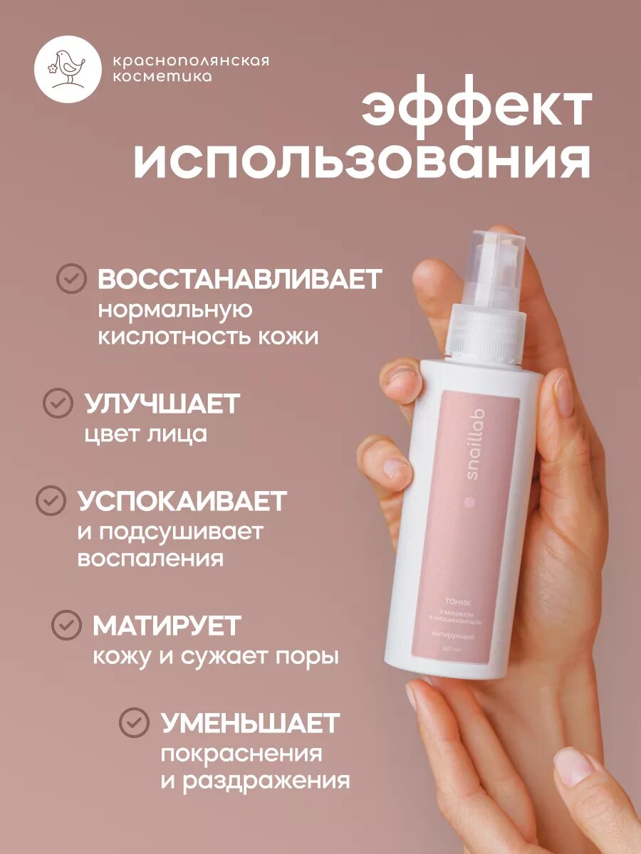| Активный ингредиент | AHA-кислоты, аллантоин, аминокислоты, антиоксиданты, аргинин, бакучиол, бетаин, витамин B3 (ниацинамид), витамин C (аскорбиновая кислота), витамины, гиалуроновая кислота, глицерин, коллаген, кофе, лимонная кислота, мед, молочная кислота, муцин улитки, пептиды, прополис, сквалан, сок алоэ, спирт, церамиды, цинк |