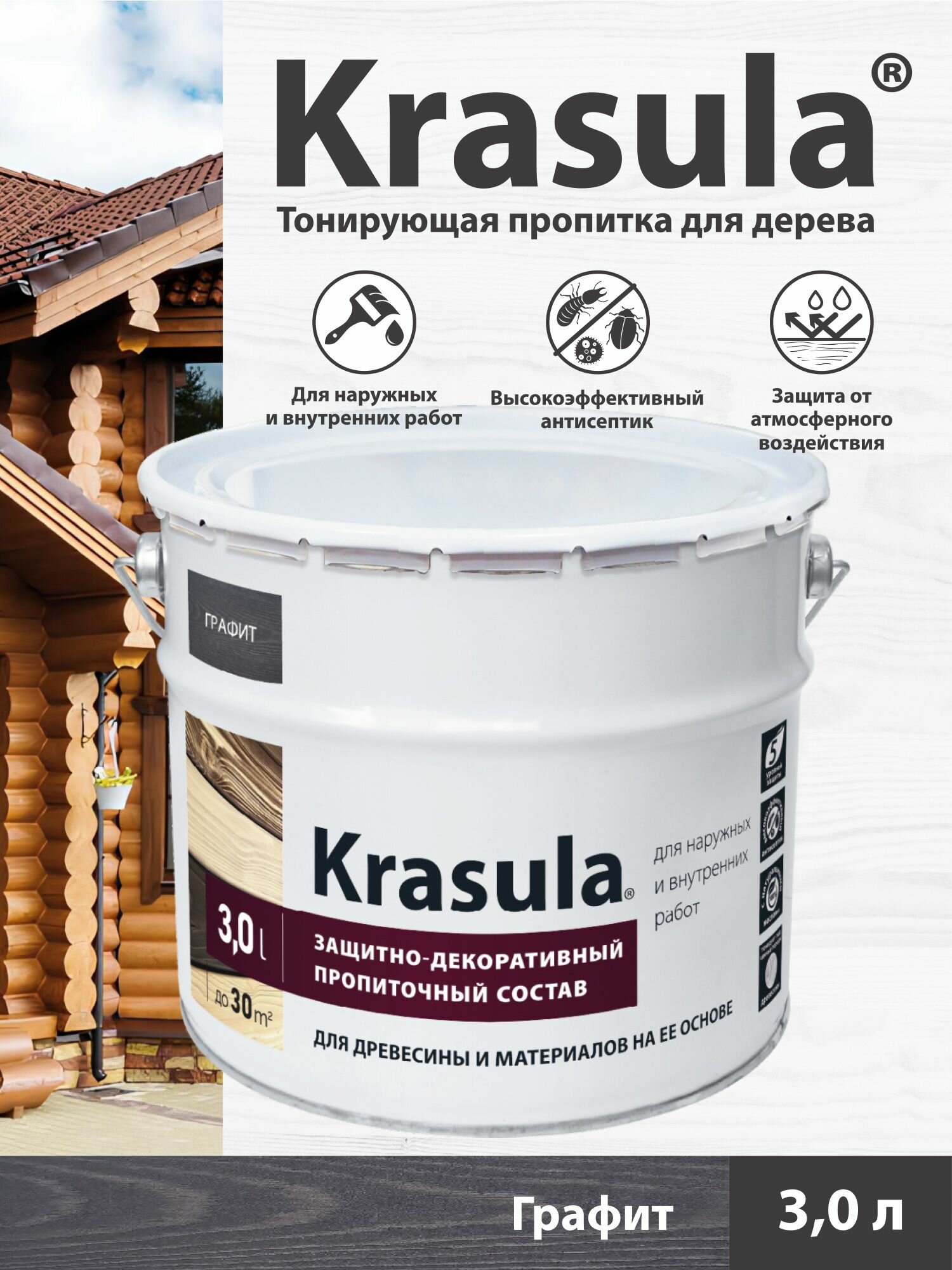 Пропитка для дерева Красула создана для защиты и тонирования древесины, а также материалов на ее основе. Для наружных и внутренних работ покрасочных работ. · Обеспечит 5 уровней защиты! Защитит от УФ-излучений, осадков и грязи, плесени, синевы, водорослей, ветшания, растрескивания; · Придаст цвет. Тонирует под ценные породы древесины, не скрывает естественную текстуру древесины; · Образует «дышащее» покрытие. Возможна обработка древесины с влажностью до 65%. Плёнку не создаёт; · Комплексная защита. Идеальна для финишного покрытия древесины, обработанной составом «Pirilax»-Lux/«Pirilax»-Special. Где применять: 1. Фасад и внутренние стены дома, двери, окна, наличники, забор, садовая мебель из пиленой, строганой, бревенчатой древесины и др. изделия; 2. Клеёные деревянные конструкции, брус LVL, ДСП, ДВП, фанера, OSB и др. материалы на основе древесины; 3. Возможна обработка бетонных, каменных, кирпичных поверхностей. При обработке поверхностей, подверженных истиранию (полов, лестниц, перил), рекомендуем дополнительное покрытие устойчивое к истиранию. Состав готов к применению. Работы проводите при температуре от +3°С. Бесцветный состав для древесины «Krasula» допускается колеровать пигментными пастами производства «Тиккурила». Колерованный состав следует использовать в течение 48 часов с момента колеровки. Нанесите состав в 1-2 слоя в зависимости от плотности, шероховатости и влажности древесины. При нанесении состава в 2 слоя время межслойной сушки составляет не менее 3 часов. При нанесении кистью состав рекомендуется равномерно распределять вдоль волокон. Пропитка для дерева с поверхностями, ранее обработанными натуральными, синтетическими и комбинированными олифами, защитными и декоративными составами, морилками, трансформаторными маслами. Время приобретения покрытием полных физико-механических свойств составляет не более 18 часов. Расход на 1 кв. м: Шлифованная древесина - 80-100 г Строганая доска, бетон, камень, кирпич - 90-130 г Ошкуренное бревно - 100-140 г Нестроганая доска - 180-225 г