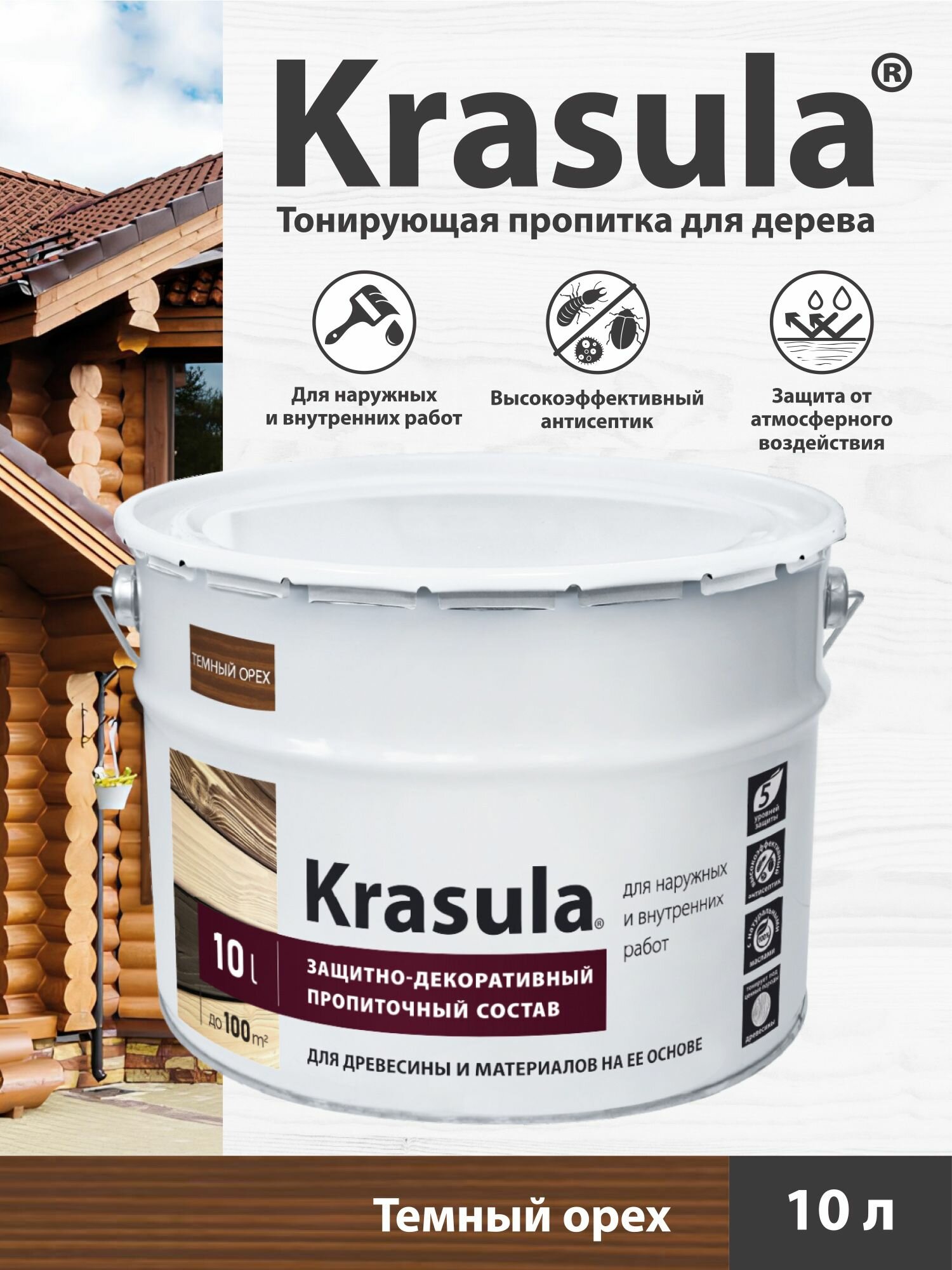 Пропитка для дерева Красула создана для защиты и тонирования древесины, а также материалов на ее основе. Для наружных и внутренних работ покрасочных работ.