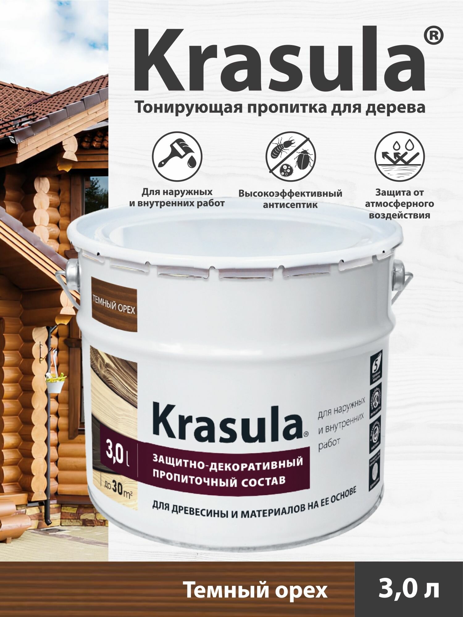Тонирующая пропитка для дерева Krasula/3л/Темный орех, защитно-декоративный состав для древесины Красула: сравнение цен, характеристики, фото, актуальное наличие и цены.
