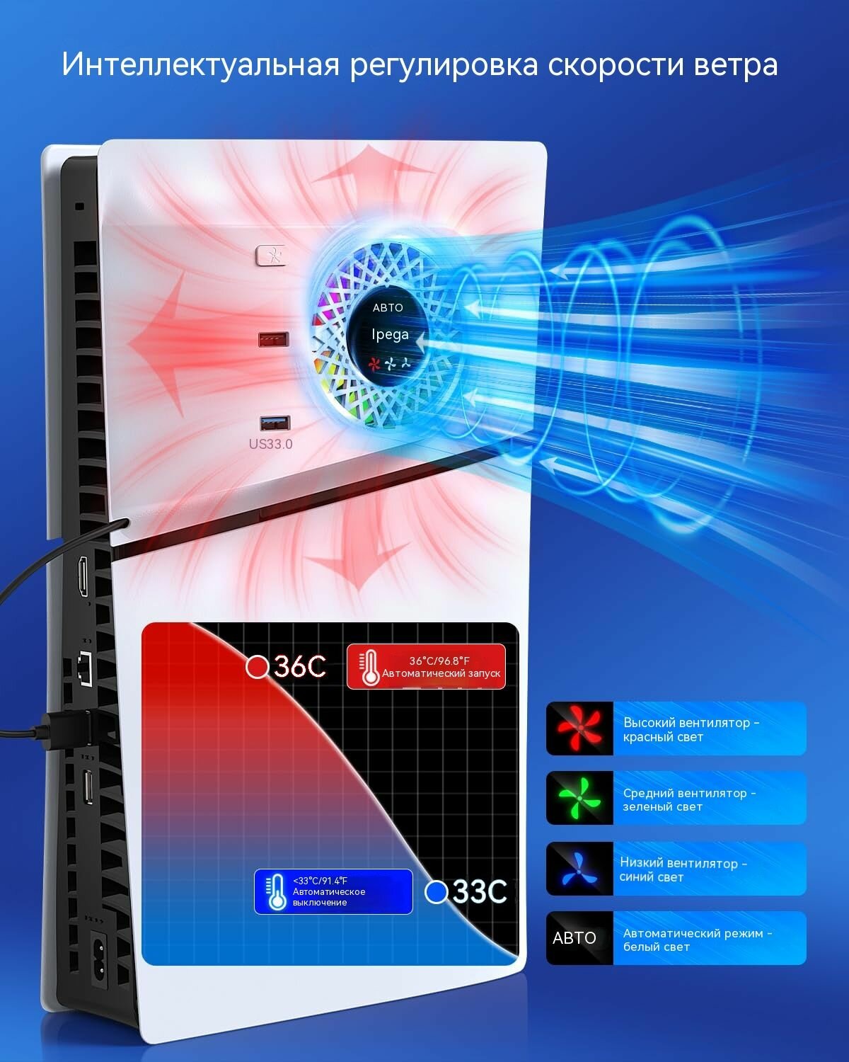 Тонкий охлаждающий вентилятор PS5 с подсветкой RGB, датчиком температуры, 3 настройками скорости, концентратором USB 3.0: сравнение цен, характеристики, фото, актуальное наличие и цены.