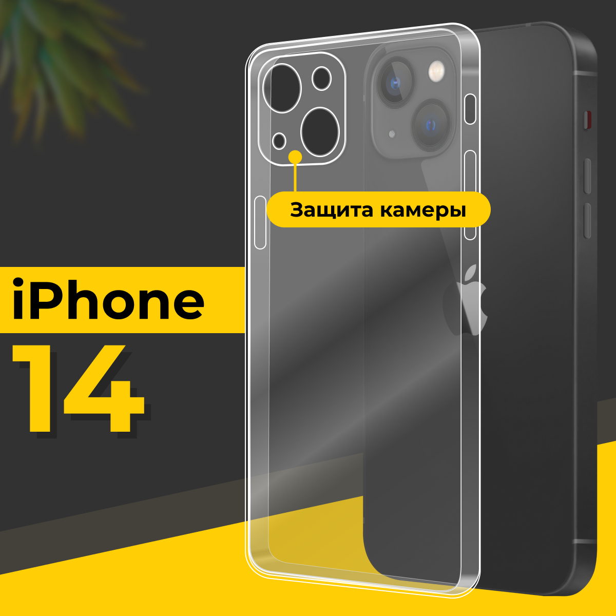 Купить Прозрачный чехол для Apple iPhone 14 с защитой камеры / Тонкий чехол на Эпл Айфон 14 с доставкой по всей России.