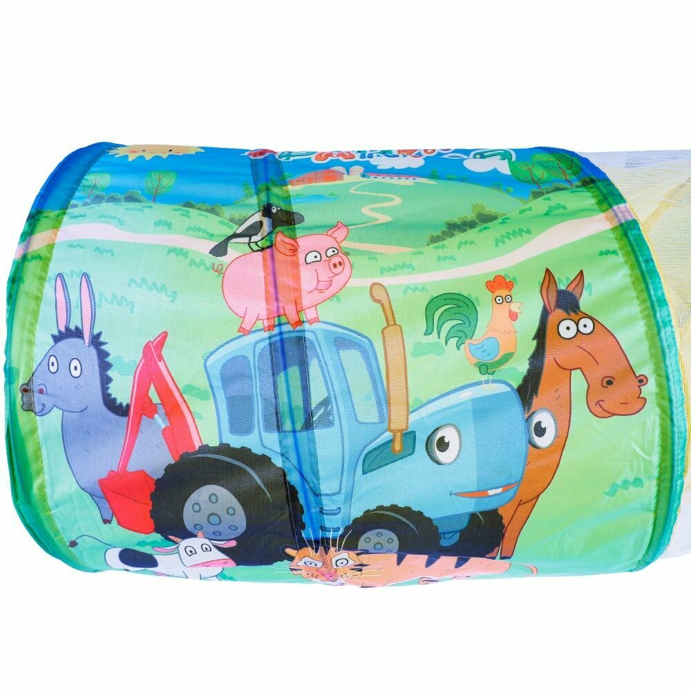 Детский игровой тоннель «Синий Трактор» ТМ «Играем вместе» - отличная площадка для весёлых и подвижных игр: - красочный дизайн с любимыми персонажами - легко собирать - самораскладывающийся каркас-спираль - компактность и удобство в хранении - упакован в сумку Маленький непоседа по достоинству оценит такой яркий тоннель, украшенный изображением персонажей любимого мультсериала. Тоннель изготовлен из качественного текстиля, который можно легко почистить от пыли и грязи. Благодаря металлическому каркасу он отлично держит форму. Тоннель легко устанавливается, а после игры также просто складывается. Удобен в хранении и при транспортировке. Игры с тоннелем ТМ «Играем вместе» развивают у ребёнка: - фантазию - воображение - моторику - координацию движений Размер тоннеля: 182,5 х 78,5 см. Материал: текстиль + металл. Рекомендовано детям от 3-х лет.