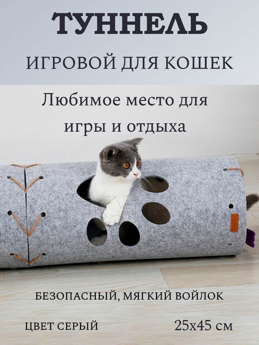 Тоннель игровой для кошек, цвет серый, 25х45 см, натуральный войлок, 1 шт.: сравнение цен, характеристики, фото, актуальное наличие и цены.