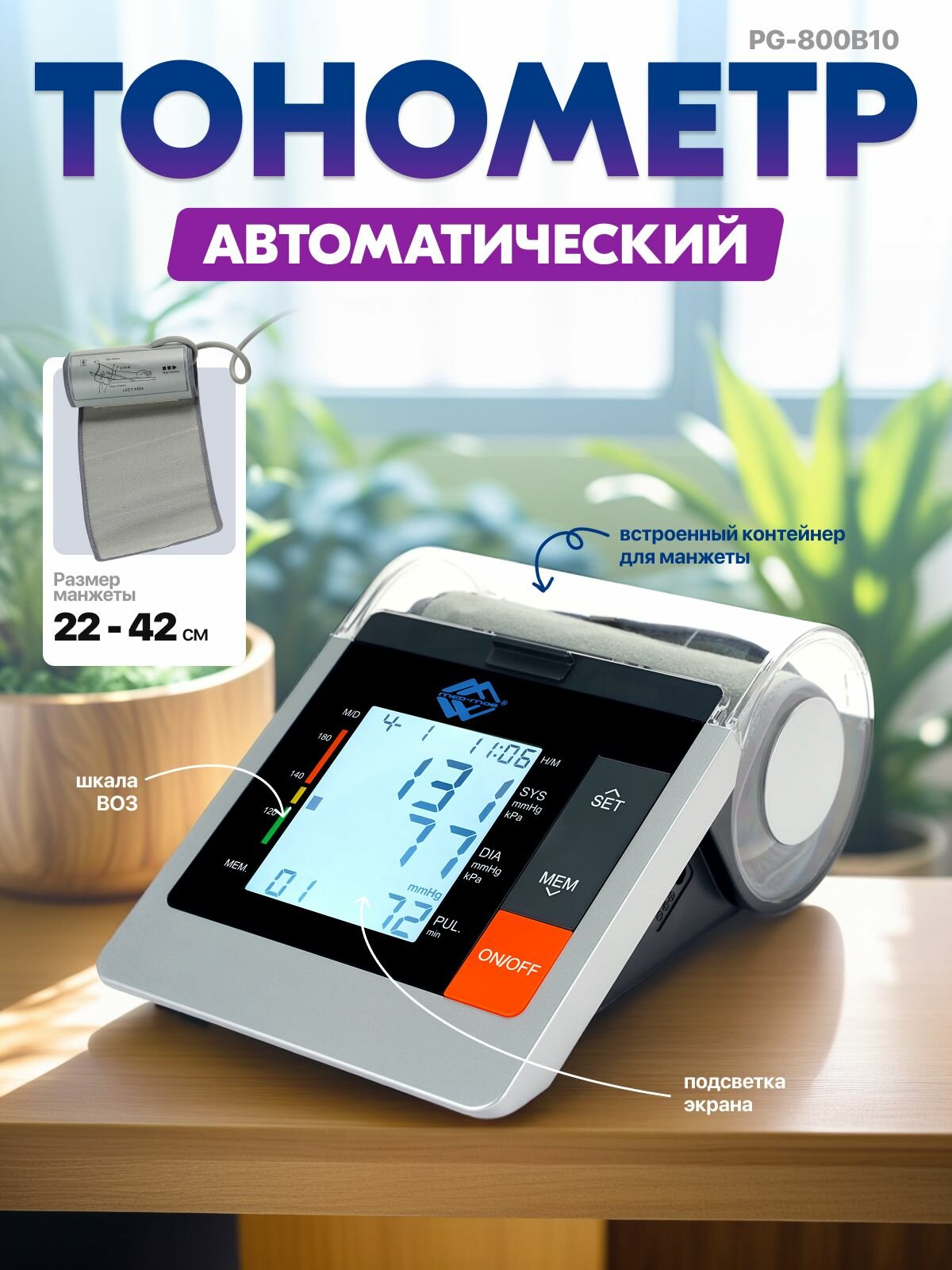 Тонометр автоматический Med-Mos PG-800B10 большая манжета 22-42см с встроенным каркасом жесткости: сравнение цен, характеристики, фото, актуальное наличие и цены.