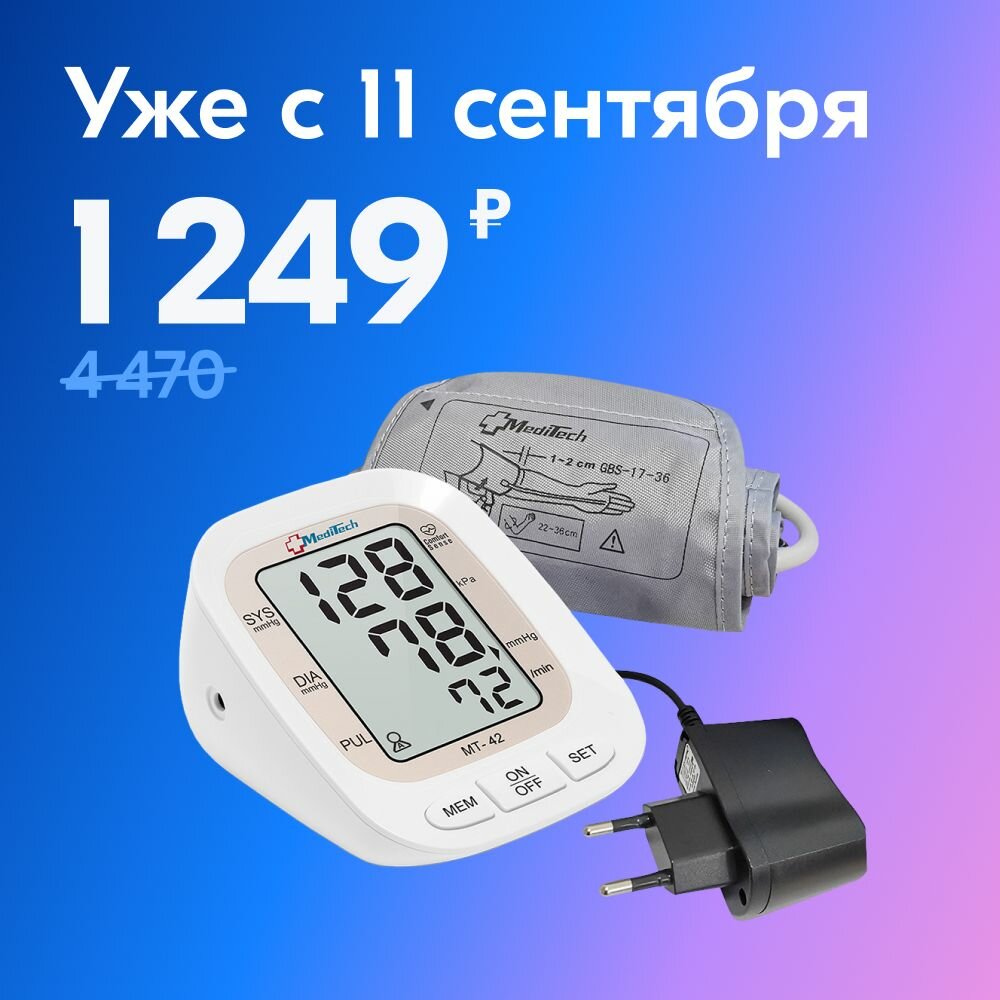 Тонометр автоматический MediTech МТ-42 (2 блока памяти; манжета 22-36 см + адаптер): сравнение цен, характеристики, фото, актуальное наличие и цены.