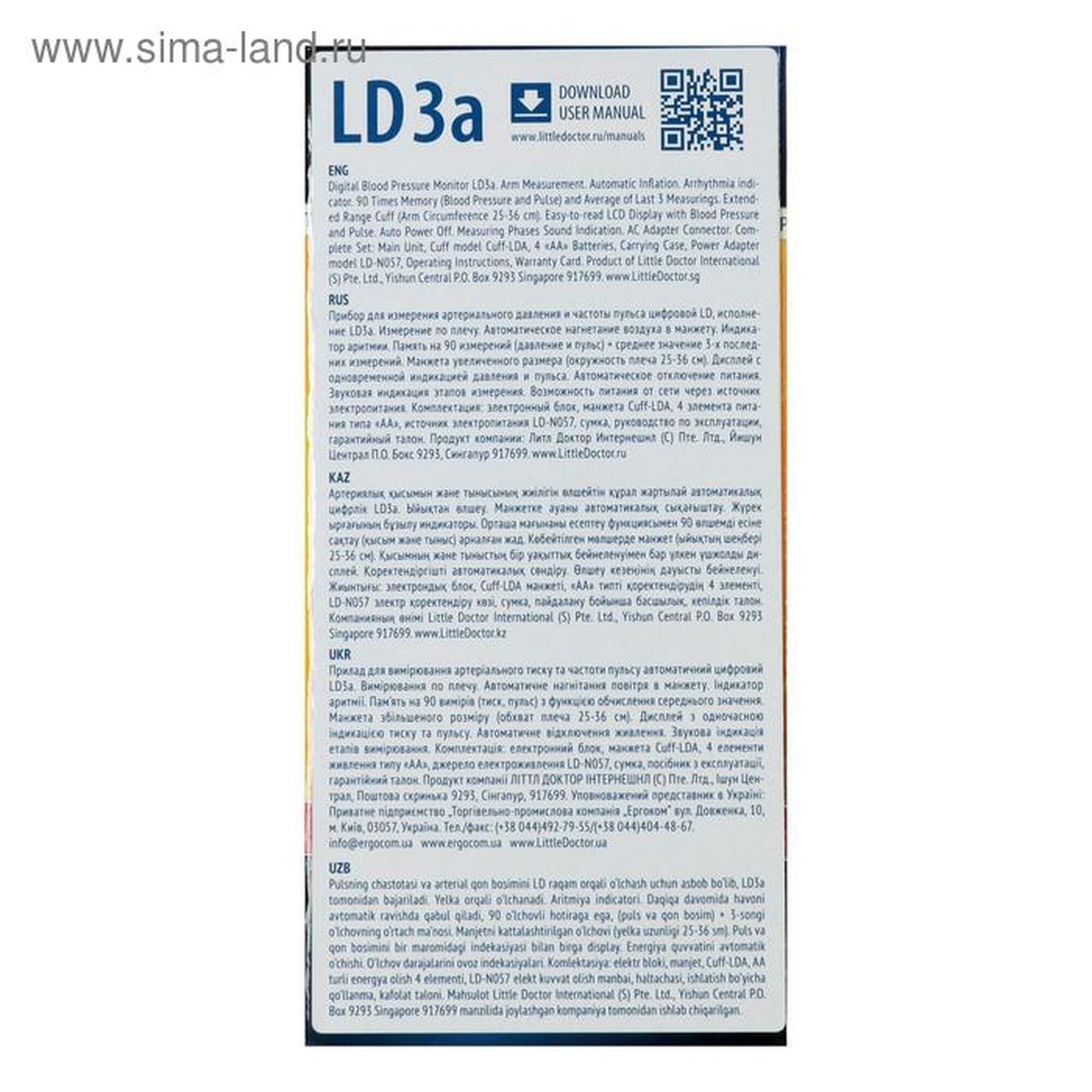 Купить Тонометр Little Doctor LD-3а, автоматический, манжета 25-36 см, 4хАА, с адаптером с доставкой по всей России. Тонометр Little Doctor LD-3а, автоматический, манжета 25-36 см, 4хАА, с адаптером: сравнение цен, характеристики, фото, актуальное наличие и цены.