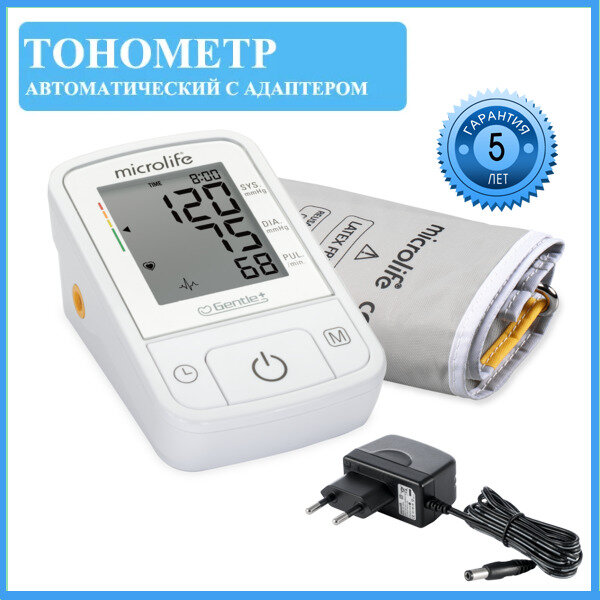 | Подробная комплектация | Оснащен текстильным чехлом для хранения 4 щелочные батареи 1,5В, размер АА или от сетевого адаптера DC 6V, 600 мA Дневником АД и манжетами M-L (22-42 см) !!ВНИМАНИЕ МАНЖЕТА ИМЕЕТ СПЕЦИАЛЬНОЕ ТЕХНОЛОГИЧЕСКОЕ ОТВЕРСТИЕ(РАЗРЕЗ) ДЛЯ ЗАМЕНЫ ПОДУШКИ, КРАЯ ОТВЕРСТИЯ ПРОШИТЫ!!! |