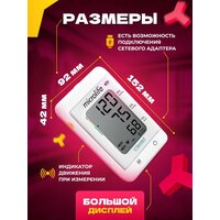 | Индикация | графический индикатор уровня АД, индикатор аритмии, индикатор движения, индикатор повышенного давления, индикатор правильной фиксации манжеты, индикатор уровня заряда батареи |