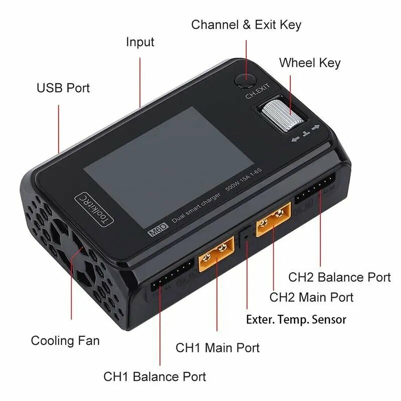 ToolkitRC M6D 500W 15A Двухканальное мини-умное зарядное устройство для аккумуляторов Lipo 16S: сравнение цен, характеристики, фото, актуальное наличие и цены.