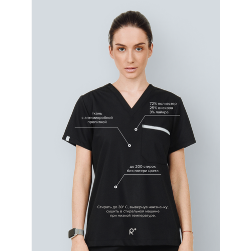 Топ медицинский Raisin 1.0, с карманами, дышащий, V-образный вырез, женский, M, черный: сравнение цен, характеристики, фото, актуальное наличие и цены.