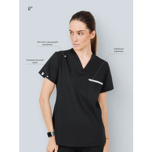 Купить Топ медицинский Raisin 1.0, с карманами, дышащий, V-образный вырез, женский, XS, черный с доставкой по всей России.