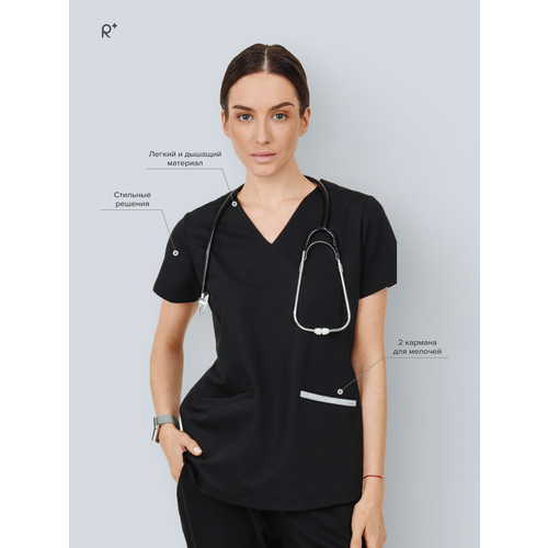Купить Топ медицинский Raisin 2.0, с карманами, дышащий, V-образный вырез, женский, XS, черный с доставкой по всей России.