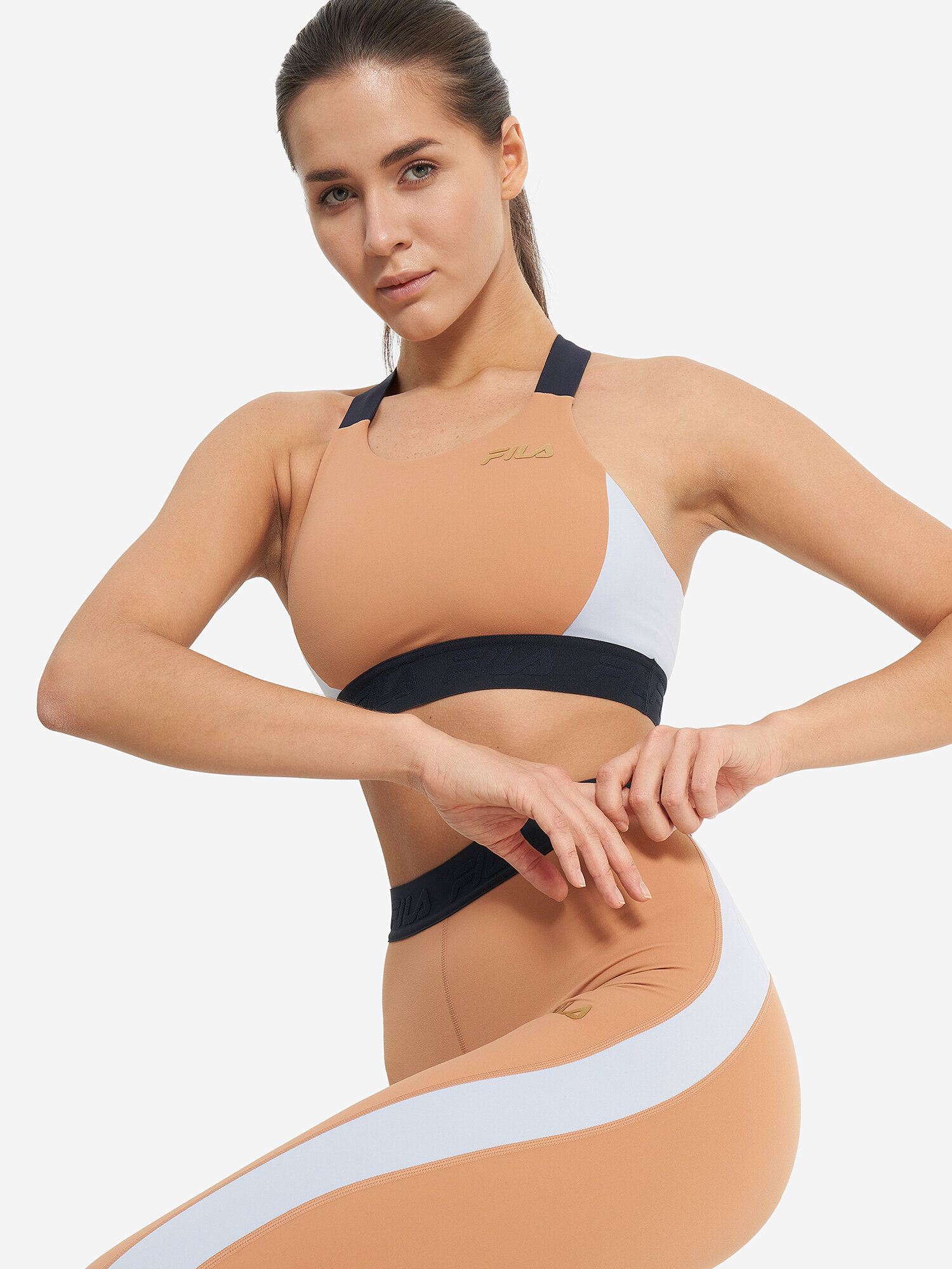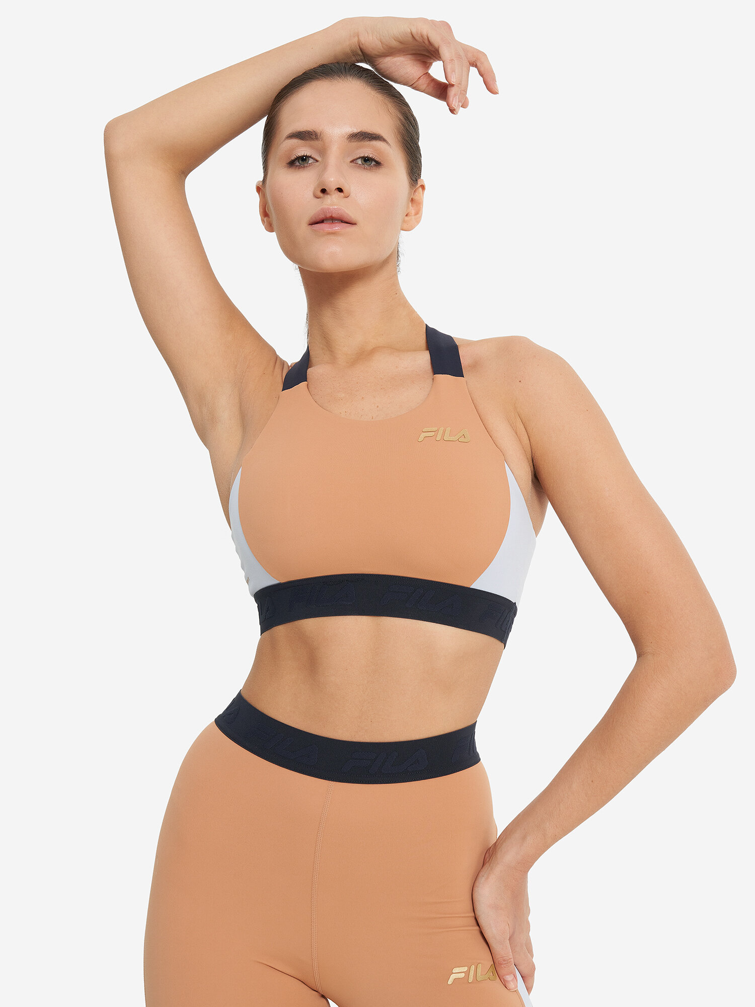 Купить Топ спортивный Fila Women’s Fitness Bra, размер 46, бежевый/синий с доставкой по всей России.