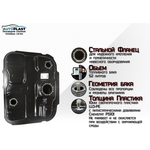 ! Запатентованная технология производства пластикового топливного бака с металлическим фланцем, гидроударной перегородкой, уловитель минимального уровня топлива.