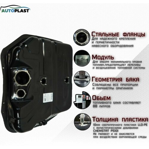 ! Запатентованная технология производства пластикового топливного бака с металлическим фланцем, гидроударной перегородкой, уловитель минимального уровня топлива.