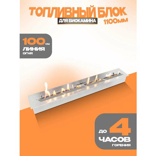 Топливный блок для биокамина SteelHeat S-LINE 1100 - незаменимая часть камина. Живой огонь создаёт особую обстановку вокруг себя. Био камин декоративный не представляет опасности для людей, животных и предметов интерьера, расположенных поблизости, так как работает на биоэтаноле - топливе, не выделяющем копоти, сажи и дыма при горении. Экокамин не требует наличия дымохода и вытяжки или согласований с какими-либо службами. Топливный блок выполнен из шлифованной жаропрочной коррозиестойкой нержавеющей стали. Во время горения под воздействием высоких температур допускается незначительная деформация блока, не влияющая на эксплуатационные свойства. Толщина металла верхней части составляет 7 мм. Проверка сварных швов ультразвуком исключает наличие слабых мест и скрытых дефектов после сварки, что гарантирует максимальный уровень безопасности. Герметизация швов производится специальным термостойким эластичным герметиком, который обеспечивает дополнительную герметичность соединений и в отличие от обычного печного герметика не осыпается от длительного использования. Топливный блок заполнен специальной керамической ватой, которая впитывает топливо и предотвращает его вытекание при случайном опрокидывании камина. Верхняя часть топливного блока имеет специальную задвижку толщиной 4 мм, с помощью которой можно регулировать интенсивность горения пламени, а также погасить в любой момент, не дожидаясь, пока топливо догорит. Ширина топливного блока - 110 см, глубина - 11 см, а высота - 6,5 см. Линия огня составляет 1000 мм. При максимальной заливке биотопливом Вы сможете любоваться горением до 4 часов. После того, как биокамин для дома прогорел, рекомендуется проветривать помещение. Биотопливо в комплект не входит.