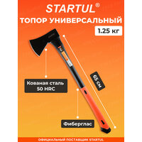 Топор универсальный кованый Startul Master ST2022-12 с фиберглассовой рукояткой -это надежный инструмент для рубки и колки дров, выборке пазов нужного размера и тесания древесины разнообразных пород. Садовый режущий инструмент с ярким, привлекательным дизайном, сочетает в себе прочность и функциональность, что делает его идеальным выбором для задач по обработке дерева. Колун имеет лезвие из кованной инструментальной стали твердостью 50 HRС, которое заточено и закалено методом ТВЧ, что придает ему прочность, долговечность и устойчивость к механическим нагрузкам. Твердость рабочей кромки, обеспечивает долгосрочную остроту лезвия, позволяя легко проникать в древесину и выполнять задачи без лишних усилий, например колка дров, плотницкие работы и тесания древесины различных пород. Лезвие топора имеет оптимальную ширину, идеально подходит как для тесания, так и для рубки, делая инструмент универсальным для вашей деятельности. Фибергласовое топорище длиной 650 мм, с накладкой в нижней части из мягкой резины отлично поглощает колебания, возникающие при работе, не передавая их на руку, обладает высокой механической прочностью, устойчиво к воздействию агрессивной среды. Покрытие из термопластичной резины мягкое наощупь, препятствует выскальзыванию топора, удобно лежит в руке, что важно для продолжительного использования инструмента. Используется в походе, на садовом участке, для сада и дачи. Вес инструмента 2 кг. Топоры Стартул подходят для отдыха на природе, прекрасно дополнят любой набор туриста и туристические аксессуары. Многофункциональный плотницкий топор - отличный подарок мужчине, парню, другу, любимому, мужу, отцу, деду. Инструмент подойдет если Вы искали: большой тапор для кемпинга походный топор с собой в поход для охоты. Подходит охотнику, рыбаку, туристу, пожарному, любителям пикника, кемпинга, туризма, похода и шашлыков. Высококачественный топор-колун будет желанным подарком для мужчины на 23 февраля, день рождения, новоселье и без повода. Бюджетный подарок рыбаку, автомобилисту, военному, полицейскому топор для охоты, сада, огорода, дачи, гаража, туризма для похода и рыбалки.