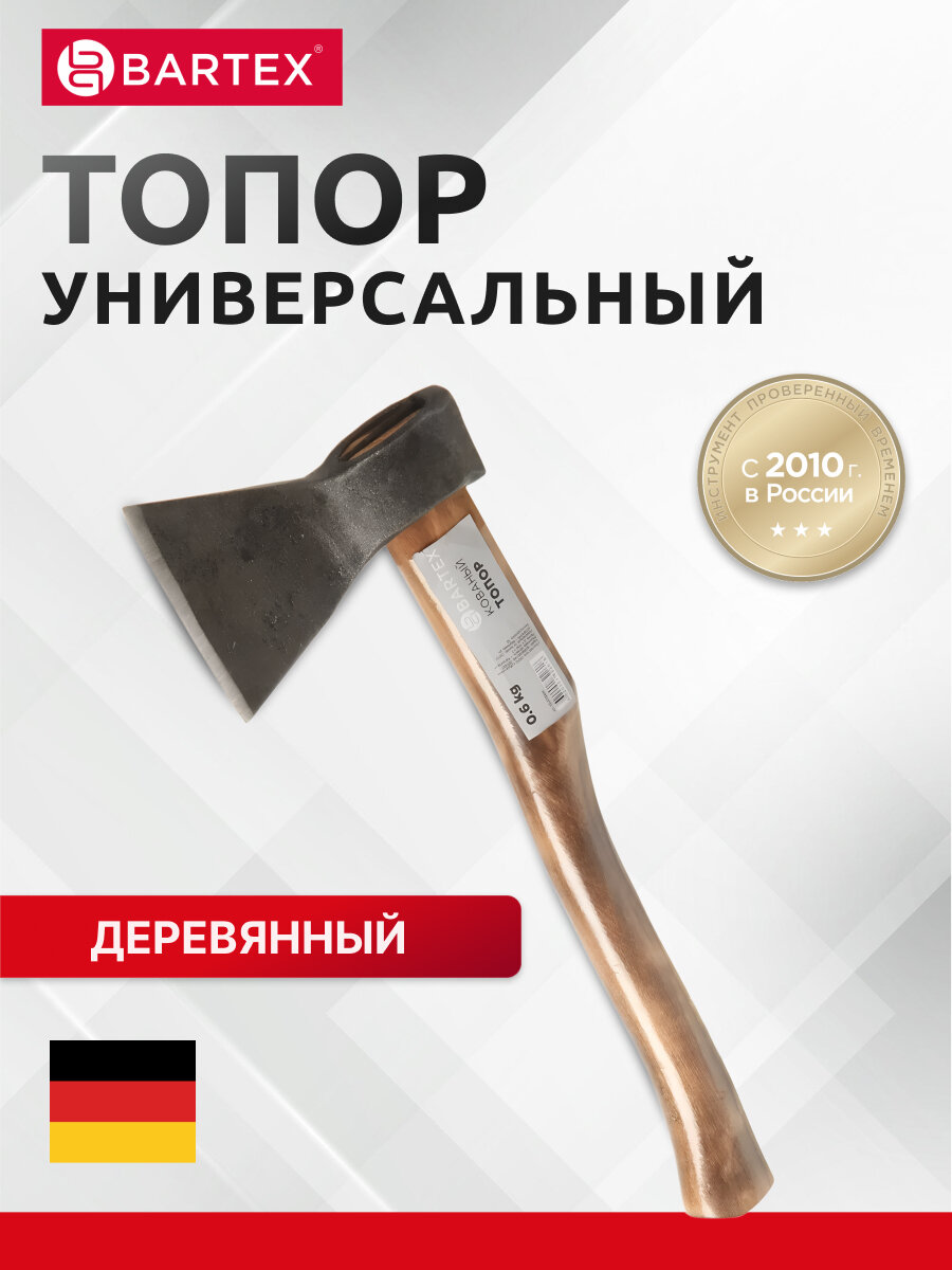 Топор Bartex Б1,2К-019 с деревянной рукояткой, 0.6 кг, Россия