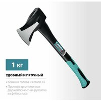 Топор-колун СИБИН 2083-10, предназначен для рубки, колки и тески древесины. Прочная стальная голова и надежная фиберглассовая рукоятка. Рабочие поверхности закалены до твердости 48 HRC. Двусторонняя заточка лезвия. Отверстие на конце рукоятки под темляк и для подвеса инструмента.