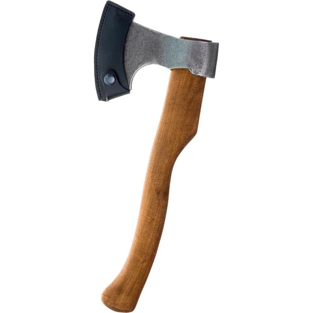 Кованый топор с деревянной рукояткой Россия Ижсталь-ТНП Викинг-Премиум 600 г 20725 предназначен для колки дров, рубки мелких деревьев и веток. Голова выкована из инструментальной стали и надежно закреплена на топорище. Рукоятка выполнена из высококачественной древесины, для долгого срока службы она обработана олифой. Для безопасного хранения и транспортировки предусмотрен кожаный чехол.