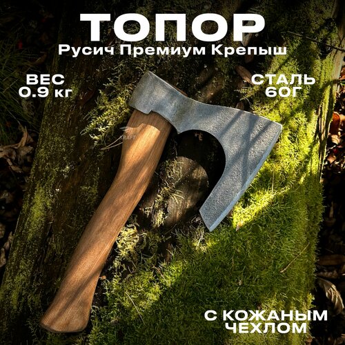 Топор кованый Русич Премиум Крепыш с кожаным чехлом из высокопрочной стали марки 60Г: сравнение цен, характеристики, фото, актуальное наличие и цены.