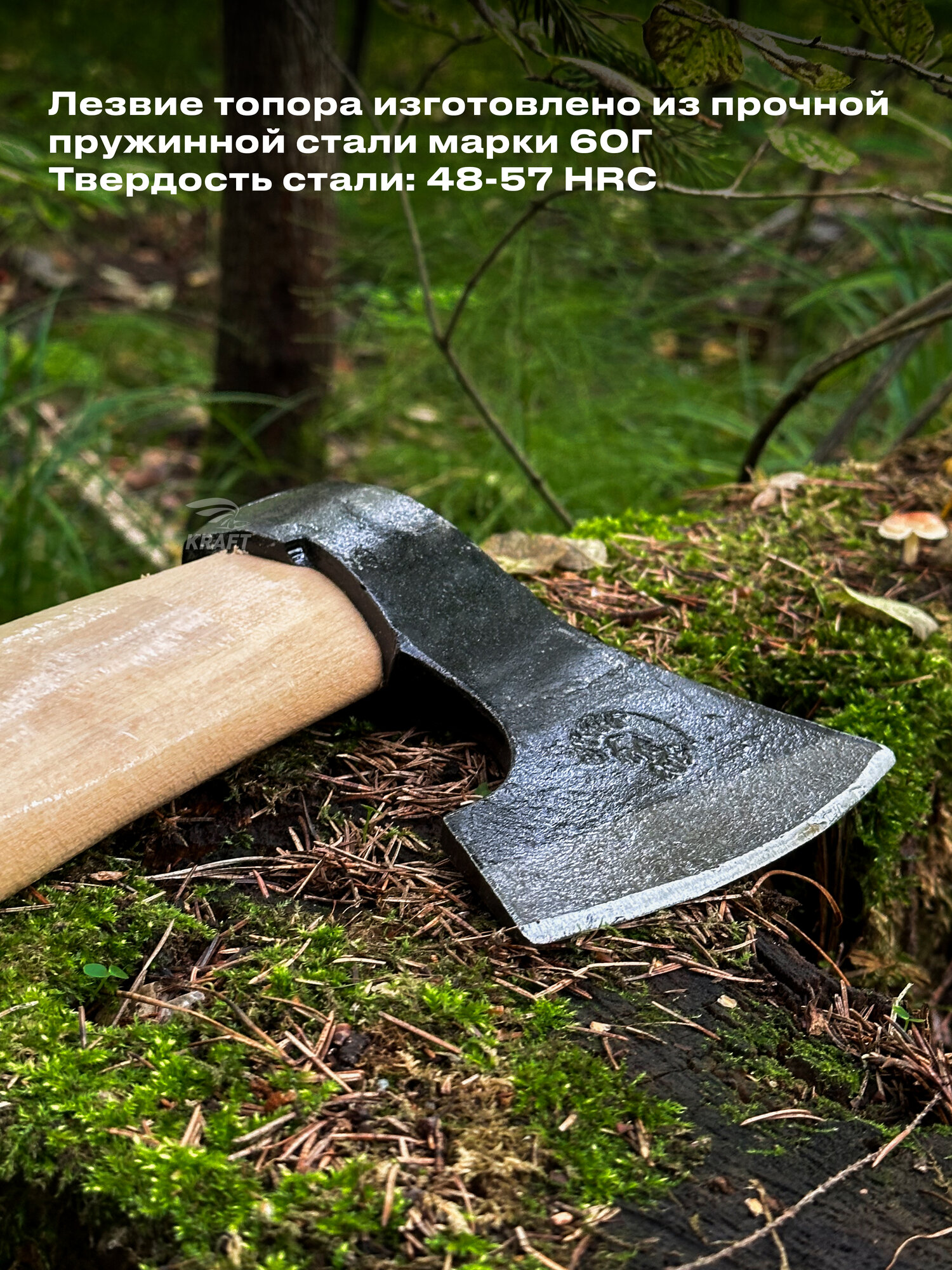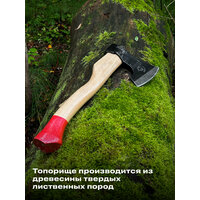 Топор применяется при работах с древесиной, для валки деревьев и рубки веток. Рабочее полотно произведено из инструментальной стали, что обеспечивает продолжительный срок службы инструмента. При изготовлении топоров, используется пружинная сталь марки 60Г, защищенную антикоррозийным лакокрасочным покрытием. Топорище выполняется из твердых лиственных пород древесины.