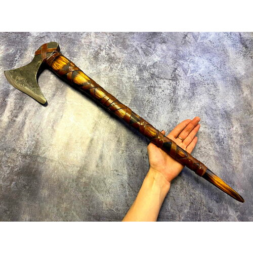 Производитель: Вётлунд Страна производитель: Россия Марка стали: Зоннозакаленная сталь 60г Материал топорища - комельная часть Березы, оплетка- натуральная кожа КРС. Длина (мм) 640 Высота, мм (от лезвия до обуха) 165 Длина режущей части, мм 160 Кованый топор ручной работы. Чехол: нет Клинок сведен и заточен до способности резать волоски. Покрыт американским маслом и воском