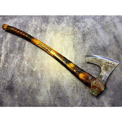 Производитель: Вётлунд Страна производитель: Россия Марка стали: Зоннозакаленная сталь 60г Материал топорища - комельная часть Березы, оплетка- натуральная кожа КРС. Длина (мм) 700 Высота, мм (от лезвия до обуха) 190 Длина режущей части, мм 160 Кованый топор ручной работы. Чехол: нет Клинок сведен и заточен до способности резать волоски. Покрыт американским маслом и воском