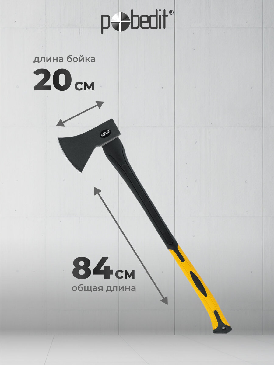 Топор Pobedit, туристический, колун, фиберглассовая рукоять, обрезиненная, 1000 гр