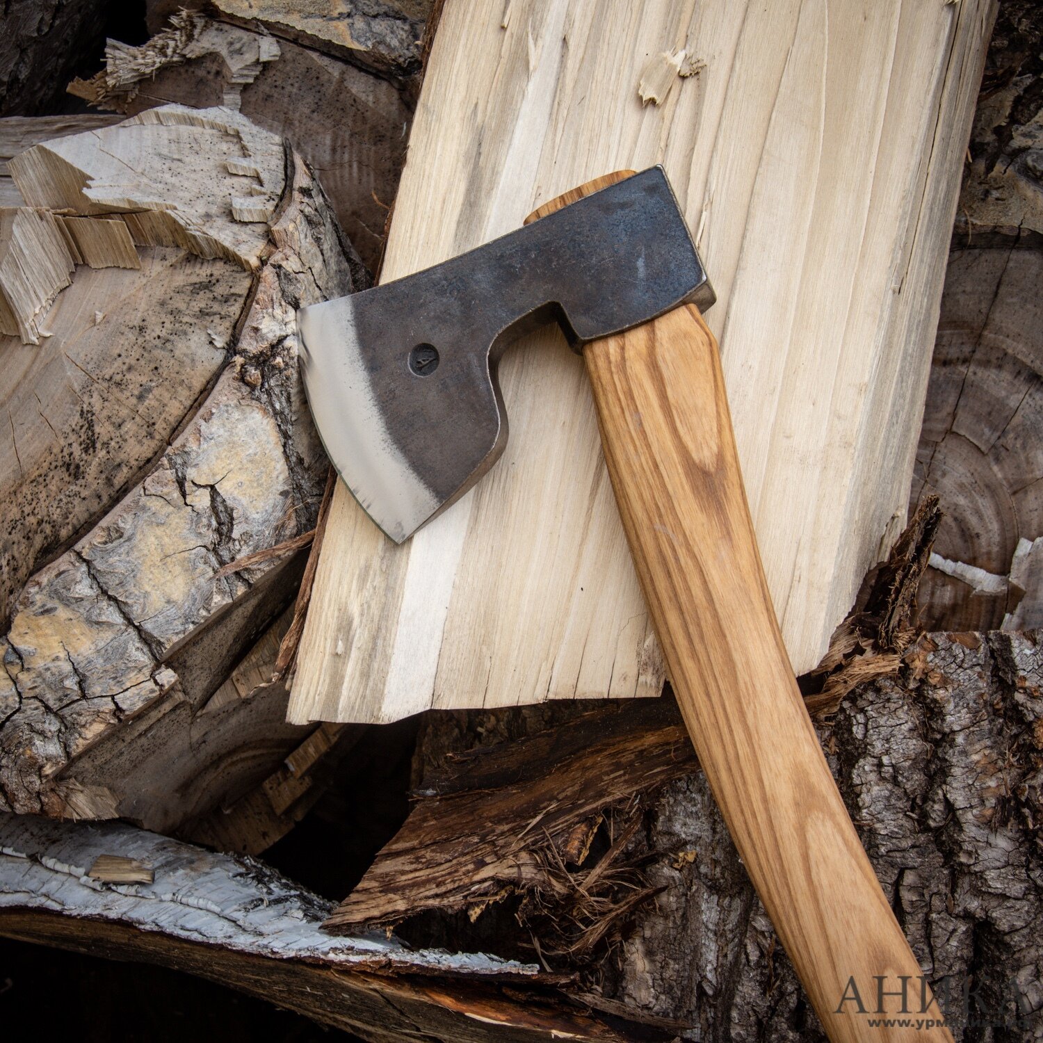 Топор изготовлен из стали ШХ15, которая прошла полный цикл термообработки и зонной закалки. Твердость режущей кромки составляет около 58 HRC, что обеспечивает высокую прочность и долговечность инструмента. Обух топора ударный, что делает его еще более функциональным.