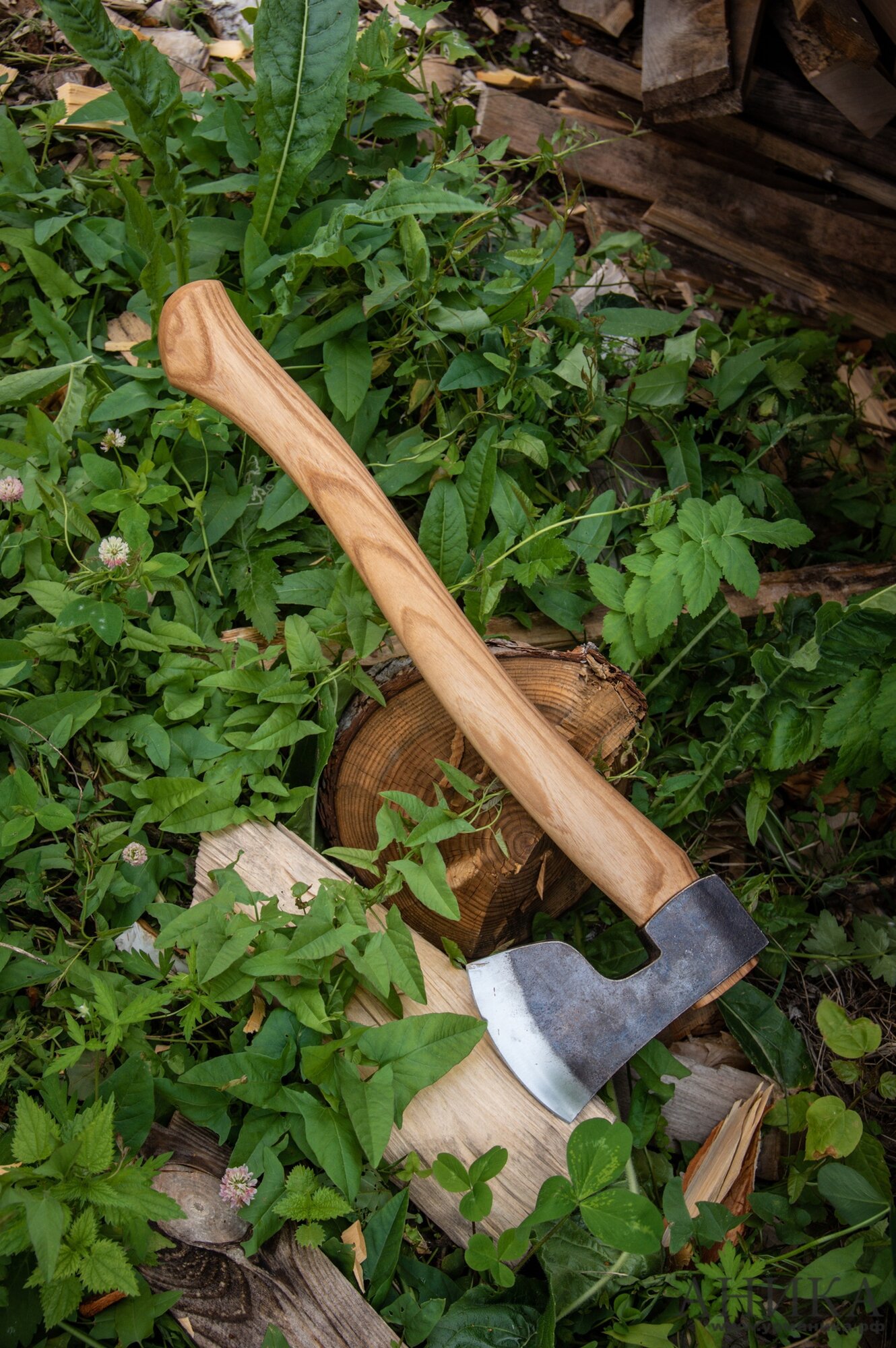 Рукоять топора выполнена из массива ясеня и покрыта тунговым маслом, что придает ей дополнительную прочность и износостойкость. Длина рукояти составляет 500 мм, а вес головы - около 850 граммов.