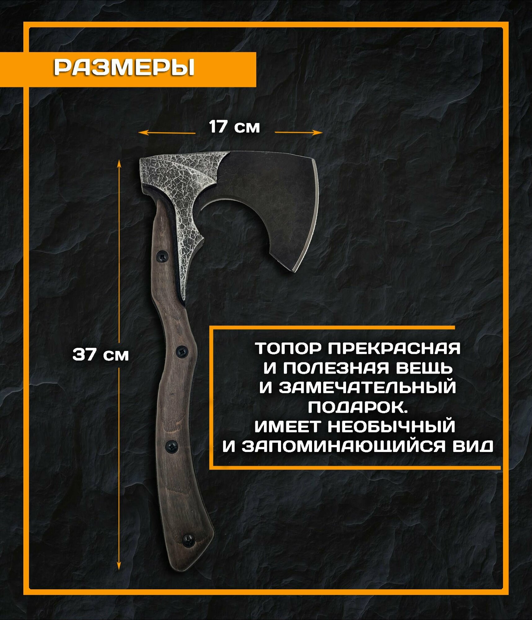 Топор имеет декоративные накладки и декоративную окраску, что придает ему необычный запоминающийся вид.