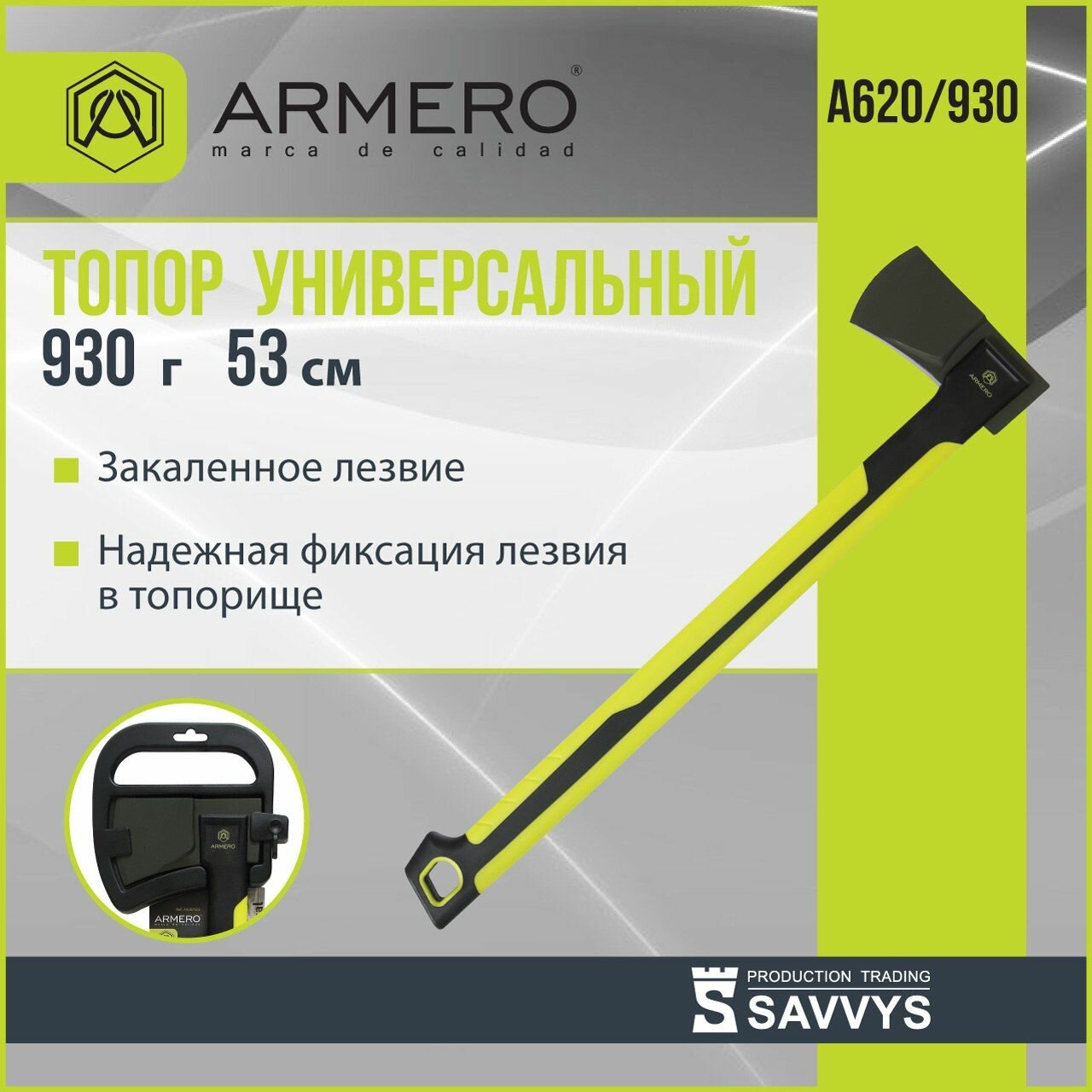 Топор ARMERO 930гр с двухкомпонентной ручкой - это надежный и удобный инструмент, который станет незаменимым помощником в быту и на природе.