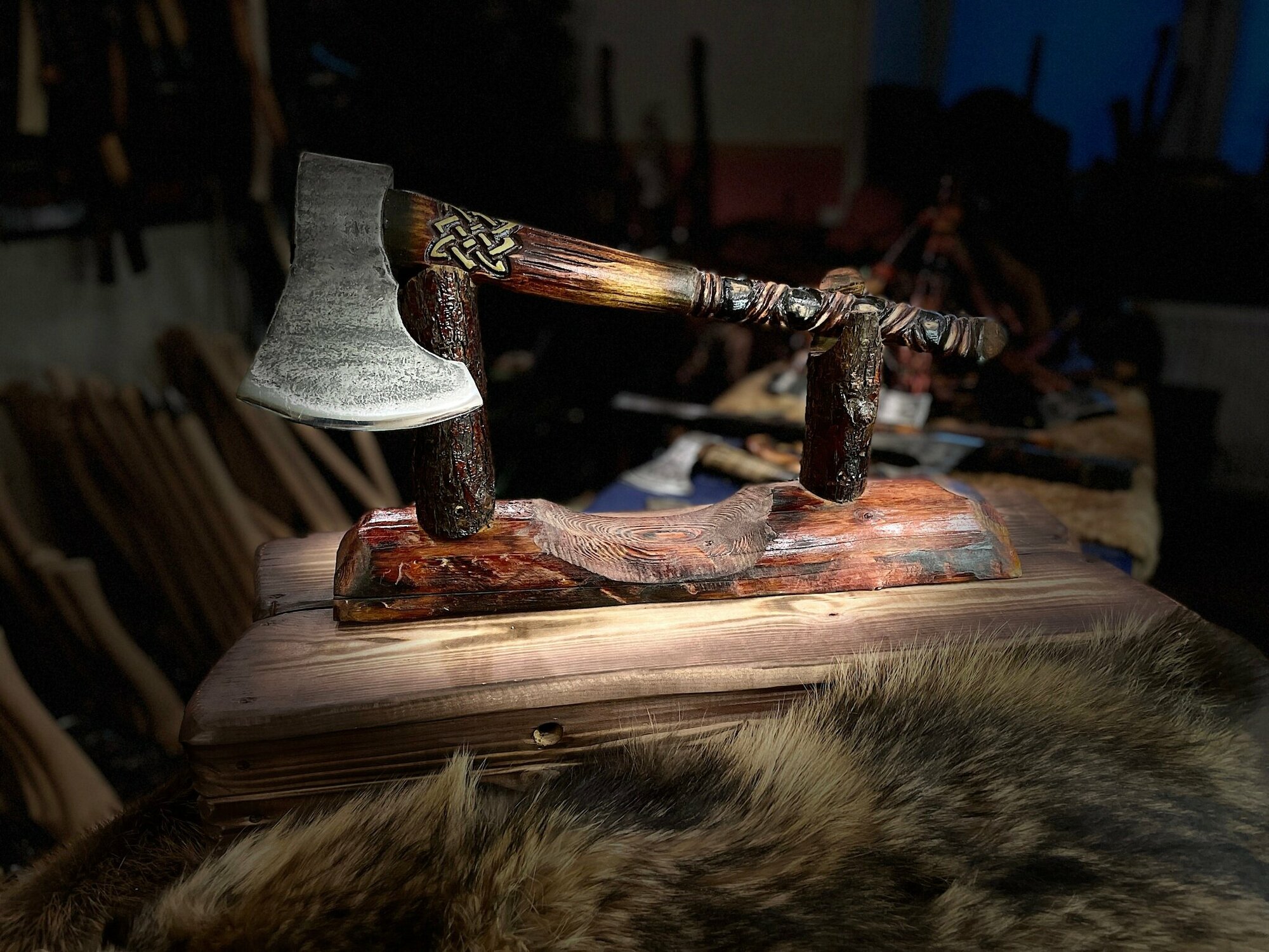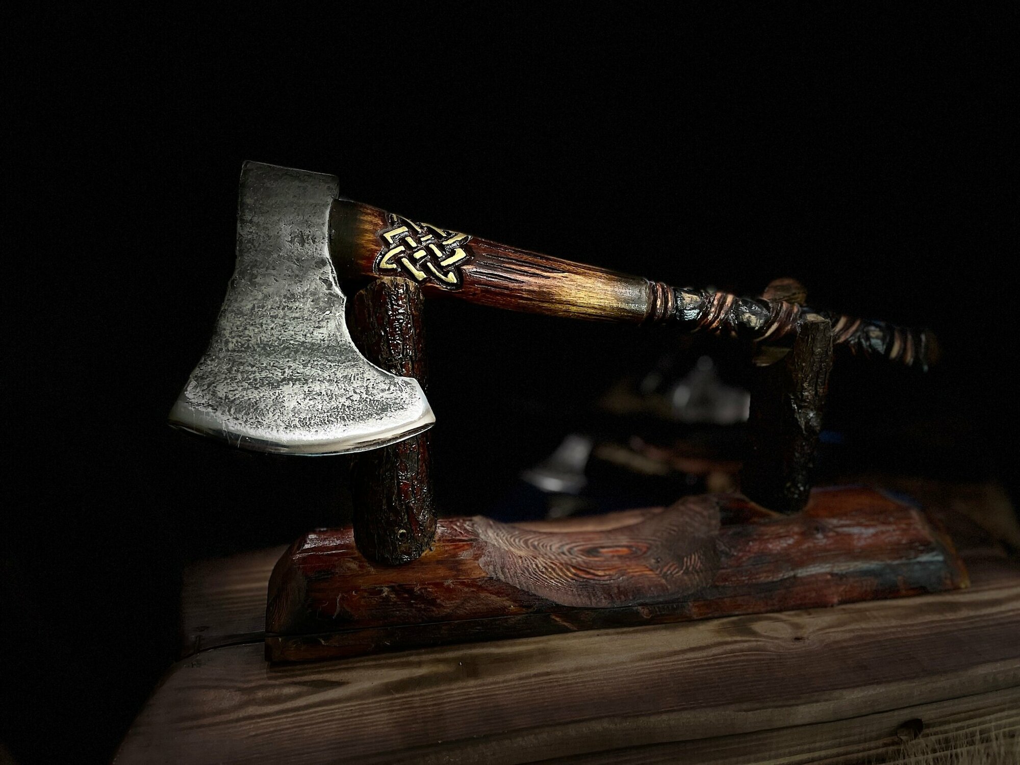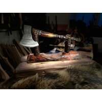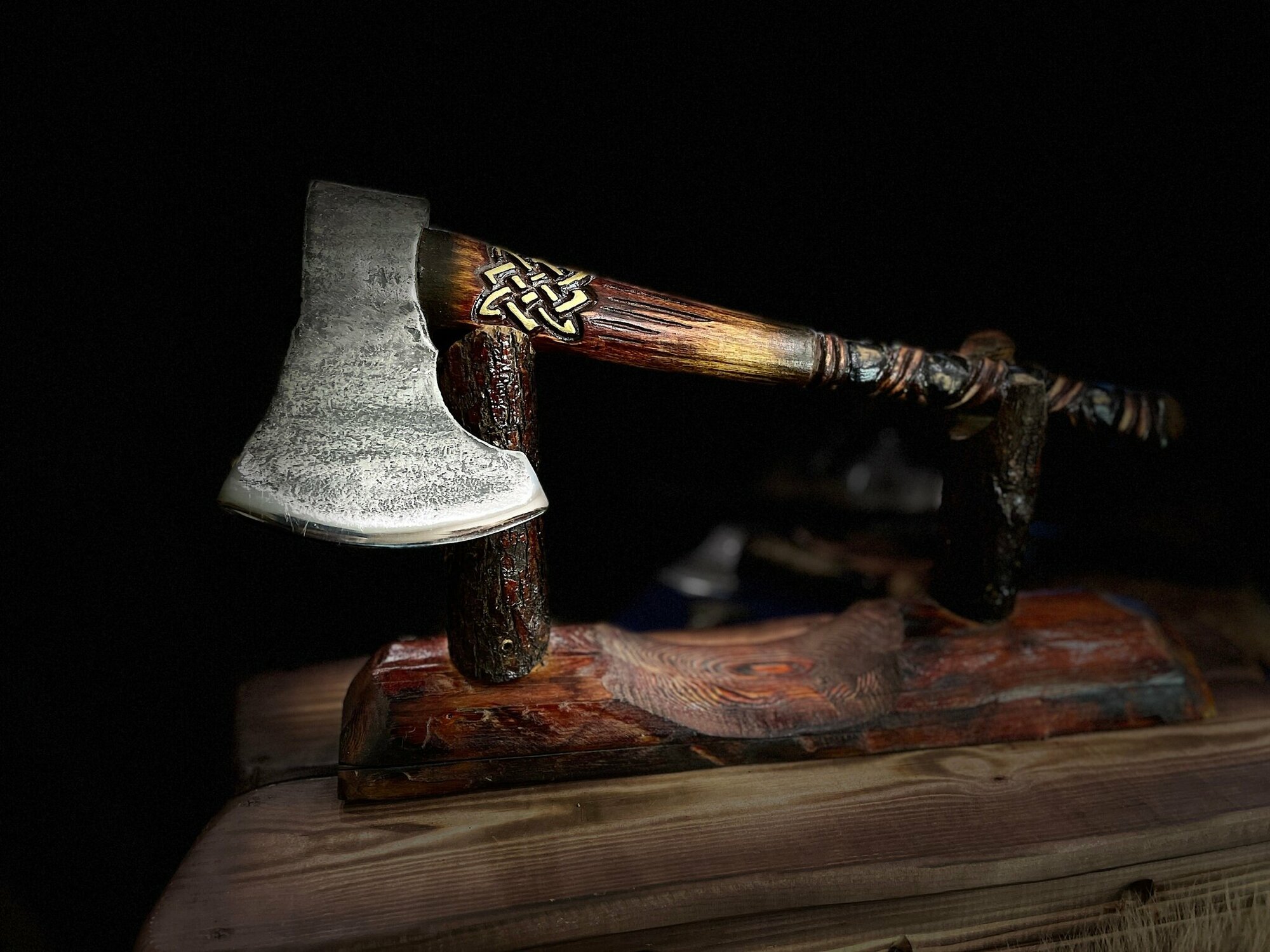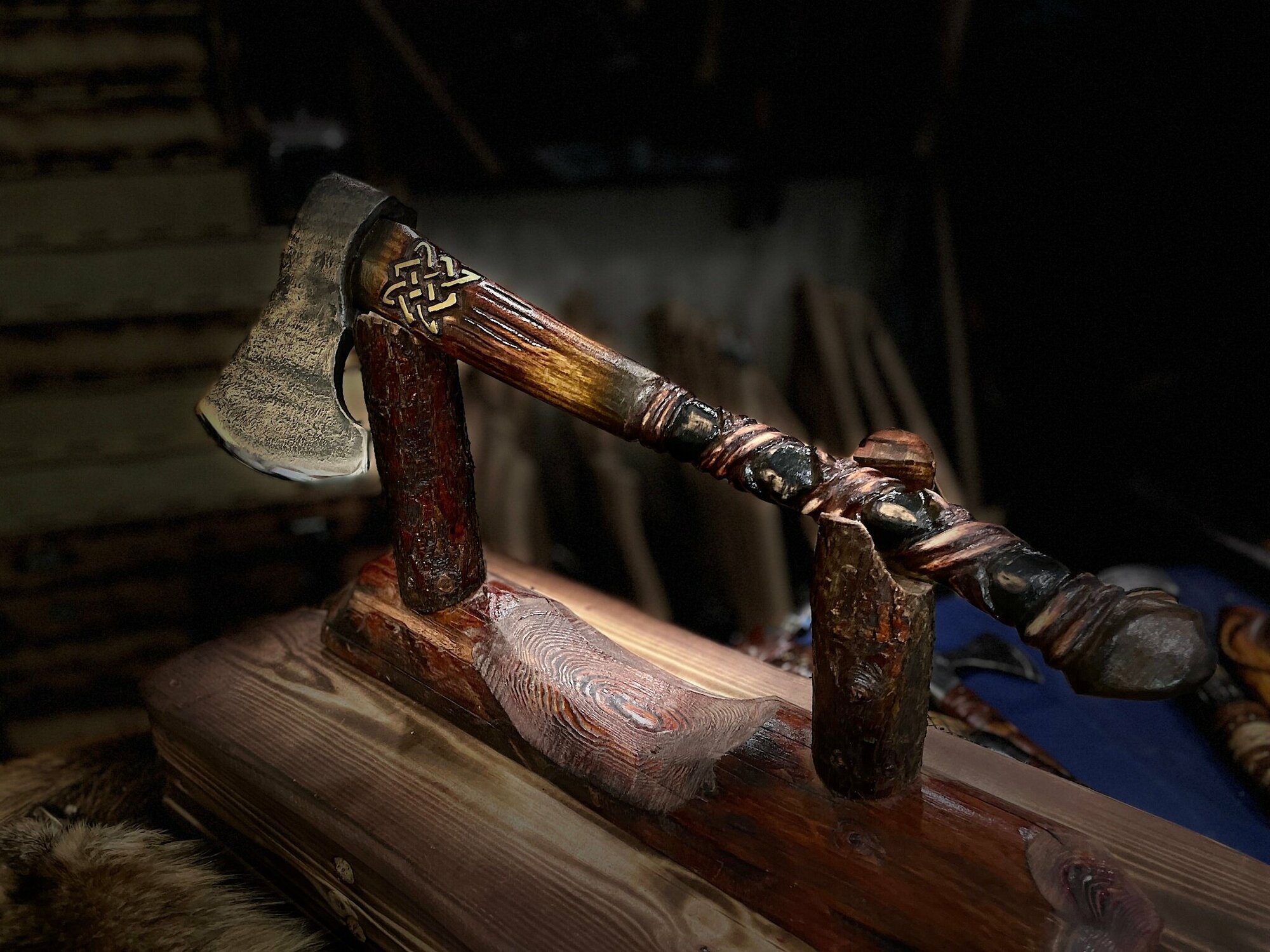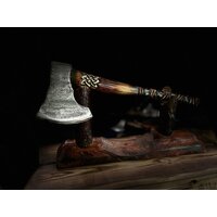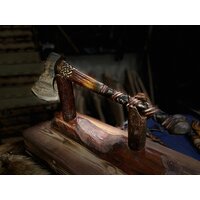 Производитель: Вётлунд Страна производитель: Россия Марка стали: Зоннозакаленная сталь 60г Материал топорища - комельная часть Березы, оплетка- натуральная кожа КРС. Чехол: натуральная кожа для лезвия Длина (мм) 530 Высота, мм (от лезвия до обуха) 190 Длина режущей части, мм 150 Вес, кг Кованый топор ручной работы. Клинок сведен и заточен до способности резать волоски. Покрыт американским маслом и воском