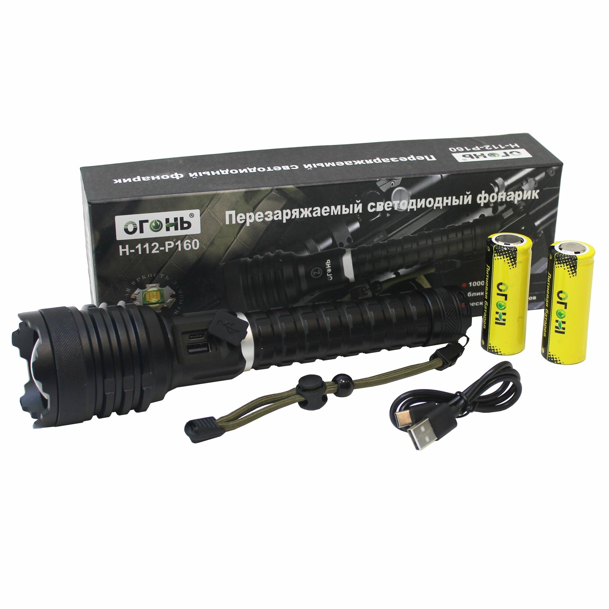Мощный ручной фонарь Огонь H-112-P160, выполненный на новейшем светодиоде XH P160 с повышенной яркостью свечения. Устройство обладает ударопрочным, водостойким корпусом из алюминиевого сплава.